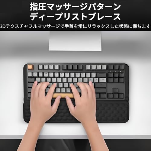 Elzo リストレスト キーボード用 手首パッド メモリーフォーム ブラック 滑り止めベース 人間工学 低反発 仕事&ゲーム&旅行用 43 x 8 x 2.5 cm(L x W x H)