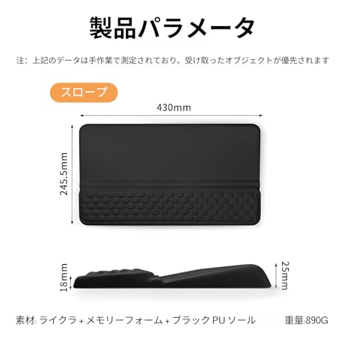 [pronala]キーボードスタンド リストレスト付き 高密度メモリーフォーム手首パッド パームレスト keyboard wrist rest 高さ調整 スローリターン設計 疲労分散 抗菌加工 430×245mm 職場/リモートワーク対応 防滑底面