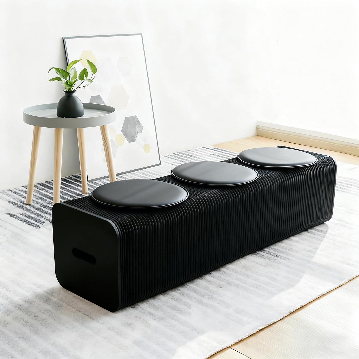YangAera アコーディオン 椅子 折りたたみ紙スツール 座布団付き 長さ調節可能 4色展開 ギャラリー/休憩室/リビングルーム/展示ホール/ビジネスシナリオ用 最大1000kg 耐荷重 スペースを節約 (黒, 長さ150cm 幅さ30cm 高さ42cm, 革パッド3枚)