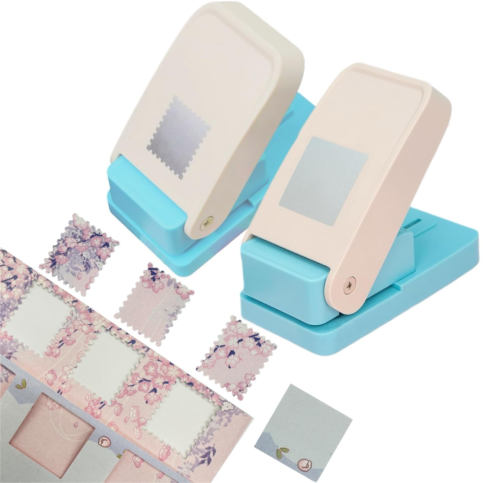 クラフトパンチ 穴あけポンチ,四角 スクエア 切手型 2点セット 1つ穴 ペーパーパンチャー 25mm ハンドメイド diy用 操作簡単 (四角+切手2点セット)