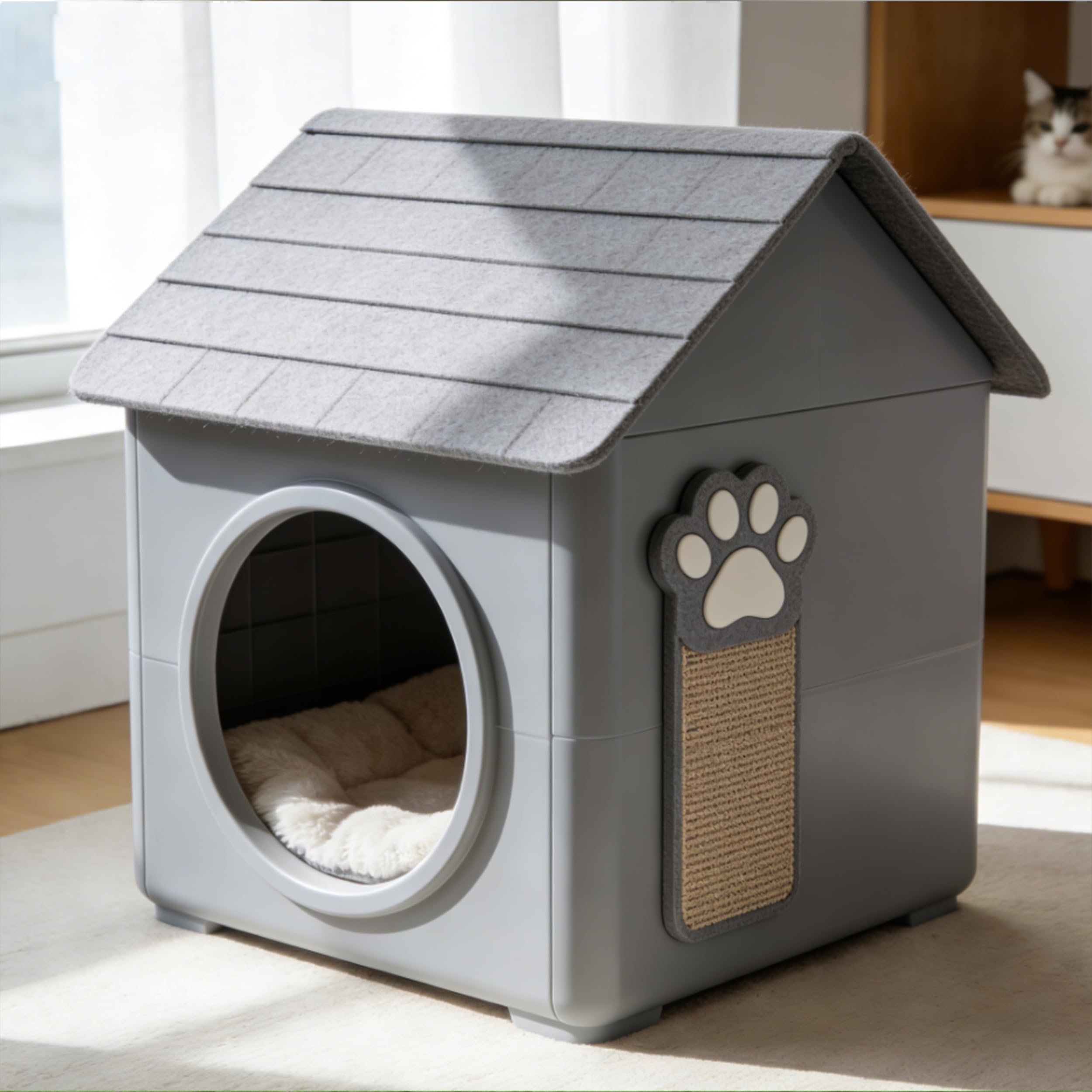 室内外兼用プラスチック製猫小屋、広々とした設計で組み立て簡単