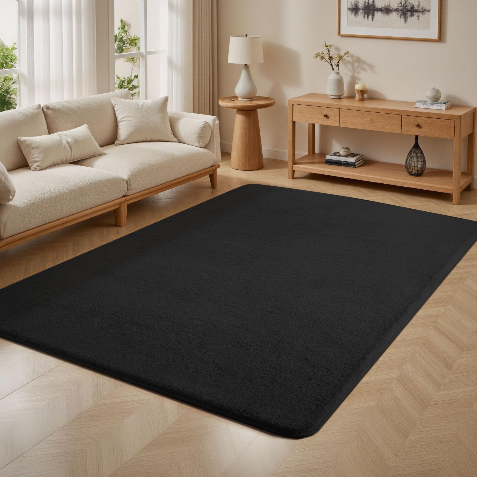 Keusnix ラグ カーペット シャギーラグ ラグマット 長方形 絨毯 120*180cm 滑り止め付 洗える 防ダニ 抗菌 防臭 オールシーズン快適に使用 床暖房 ホットカーペット対応 ふわふわ肌触り ブラック