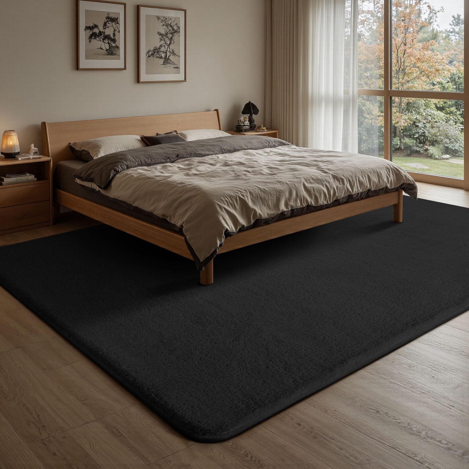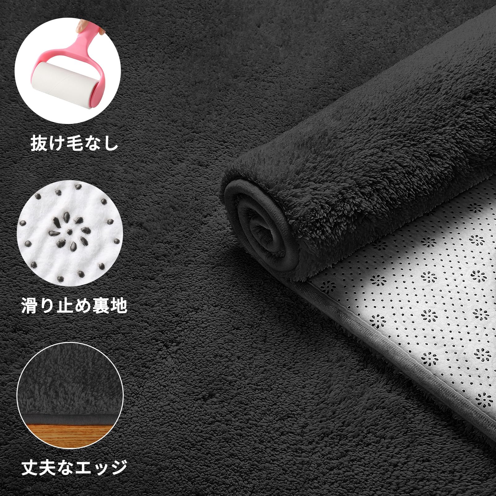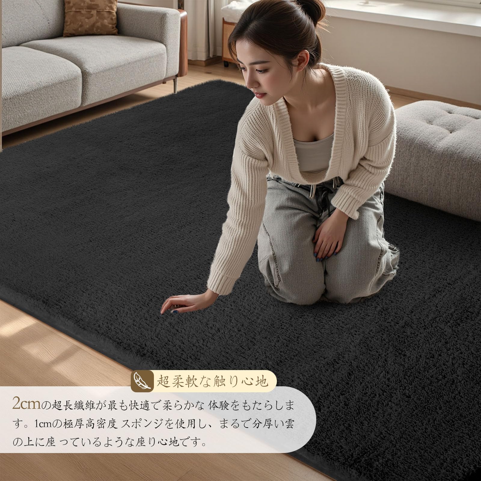 ラグマット カーペット 240x300cm 全厚約2cm 滑り止め付 洗えるラグ 抗菌 ふわっと手触り 防音絨毯 オールシーズ おしゃれな北欧風シャギーラグ 極厚ウレタンフォーム10mm 寝室、リビングルーム用のふわふわラグ、ブラック