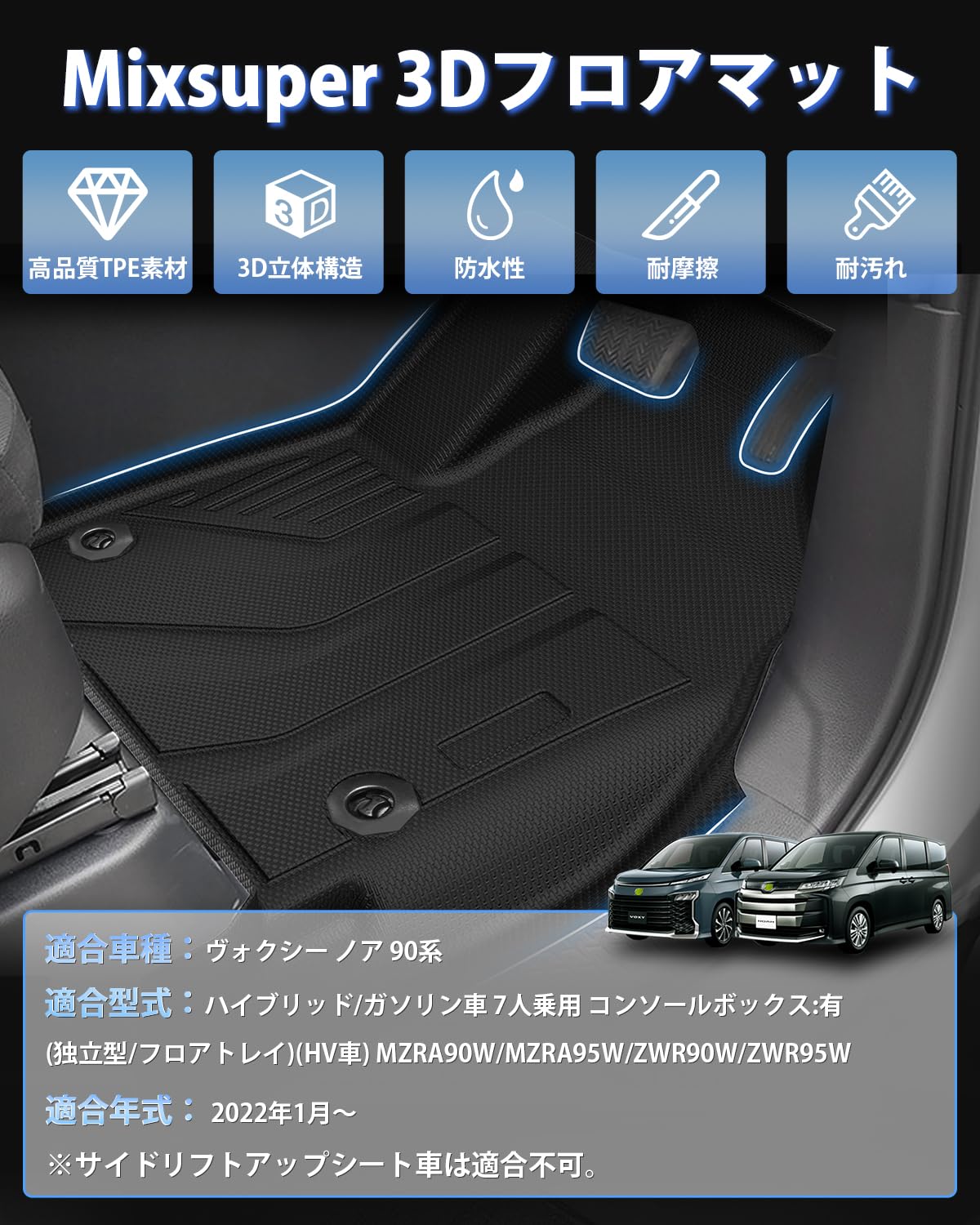 Mixsuper 新型 ヴォクシー ノア 90系 フロアマット 立体カーマット VOXY NOAH 90 専用 3Dフロアマット 防水マット 7人乗りハイブリッド ガソリン車 2022年1月~ ノア ヴォクシー90 カスタムパーツ TPE素材 車種専用設計 防水性 耐摩擦 耐汚れ 耐候性 難燃性