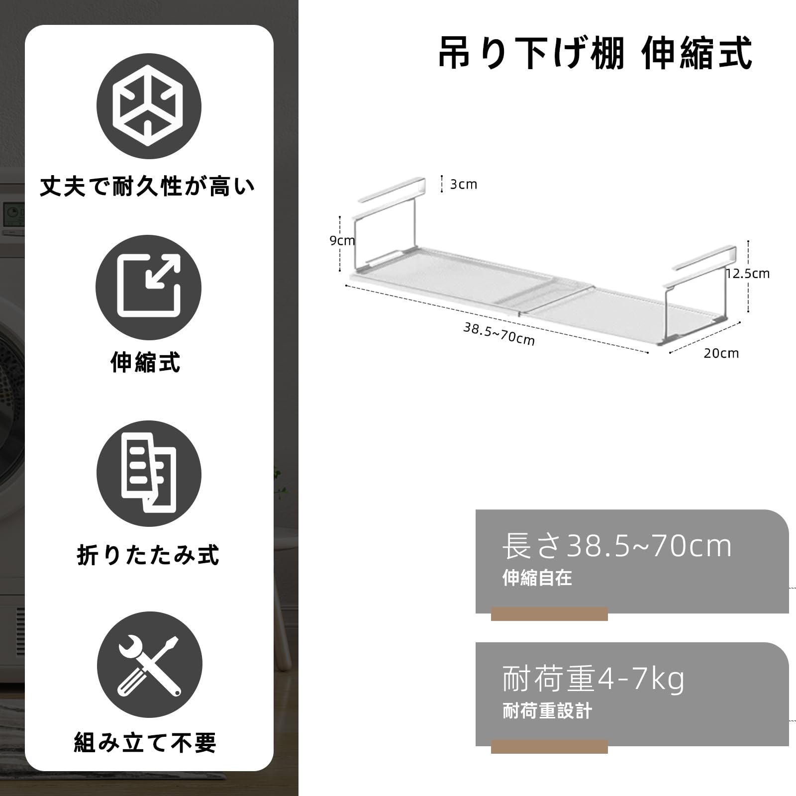 LunaMeet 吊り下げ収納 伸縮式 吊り下げ棚 吊り戸棚下ラック 棚下収納 吊り戸棚収納 吊り戸棚バスケット 戸棚した収納ラック 吊り下げ キッチン下収納 折り畳み式 (ホワイト, 1個入)