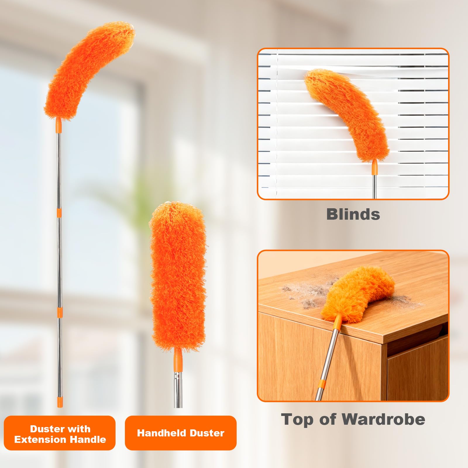 JEHONN ほこり取りはたき ハンディモップ ポール付き254cm伸縮自在洗える 再利用可能 折り曲げ可能 ダスター 扇風機、高天井、テレビ、ブラインド、車の掃除用