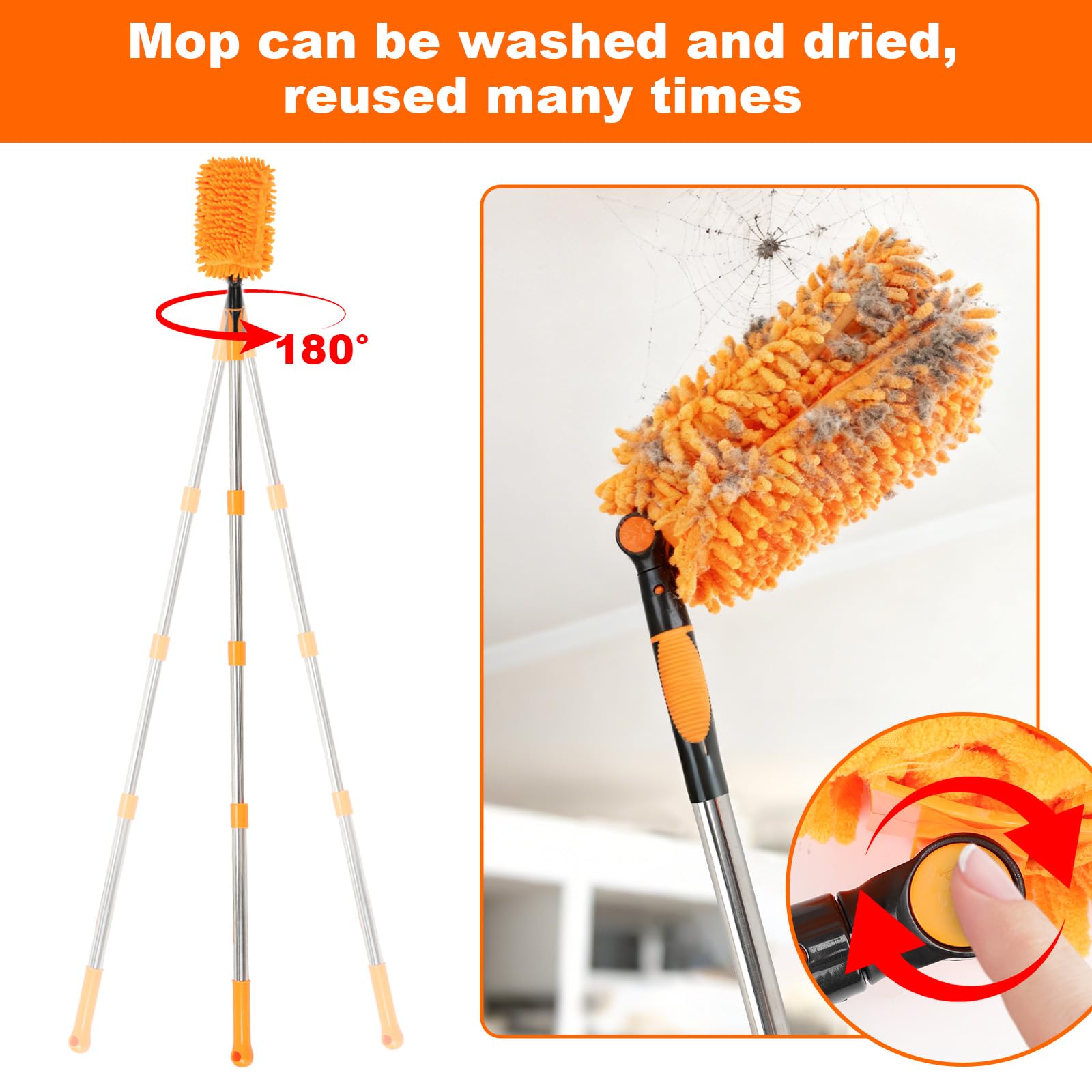 3M 高所モップ ロングハンディモップ 洗える 高所掃除ブラシ高所のクモの巣・ホコリとり取り ハンディ 高所掃除ブラシ 洗える リントフリーマイクロファイバーホコリ取り 長さ調整可能 蜘蛛の巣取り棒 洗車 ほこり取り シーリングファン用