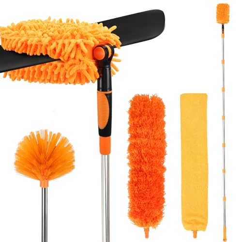 JEHONNマイクロファイバー ほこり取りはたき ハンディモップ (11本入り) 254cm 延長ポール付き 洗える 再利用可能 折り曲げ可能 ダスター 扇風機、高天井、テレビ、ブラインド、車、蜘蛛の巣の掃除用