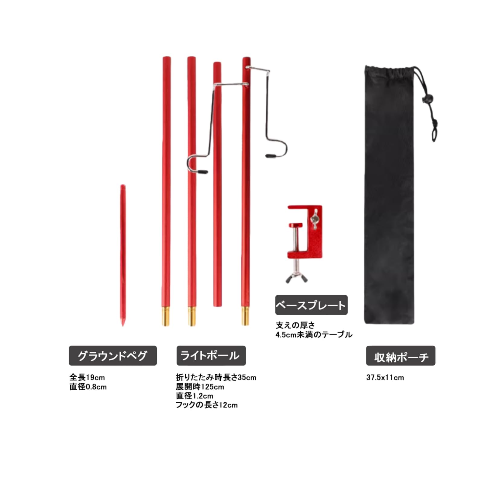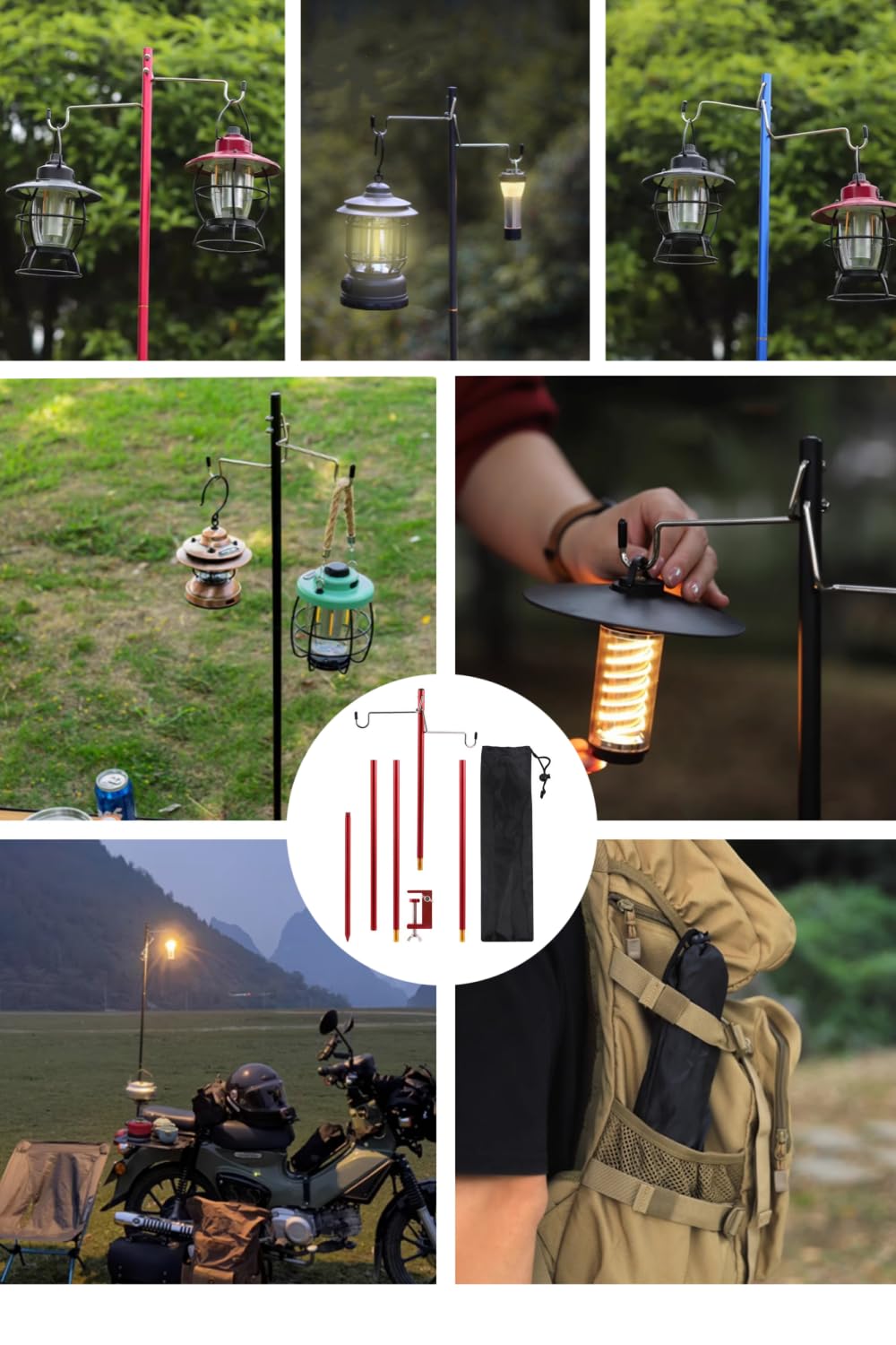 ランタンスタンド ランタンポール 折りたたみ クランプ式 打ち込む 両用 超軽量 丈夫 安定強化 アルミペグ付き 収納袋付き ランタン用アクセサリー アウトドア キャンプ用品 調整可能なランタンフック付き