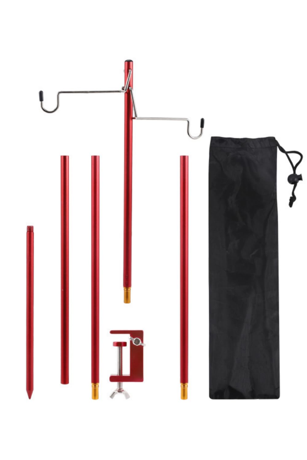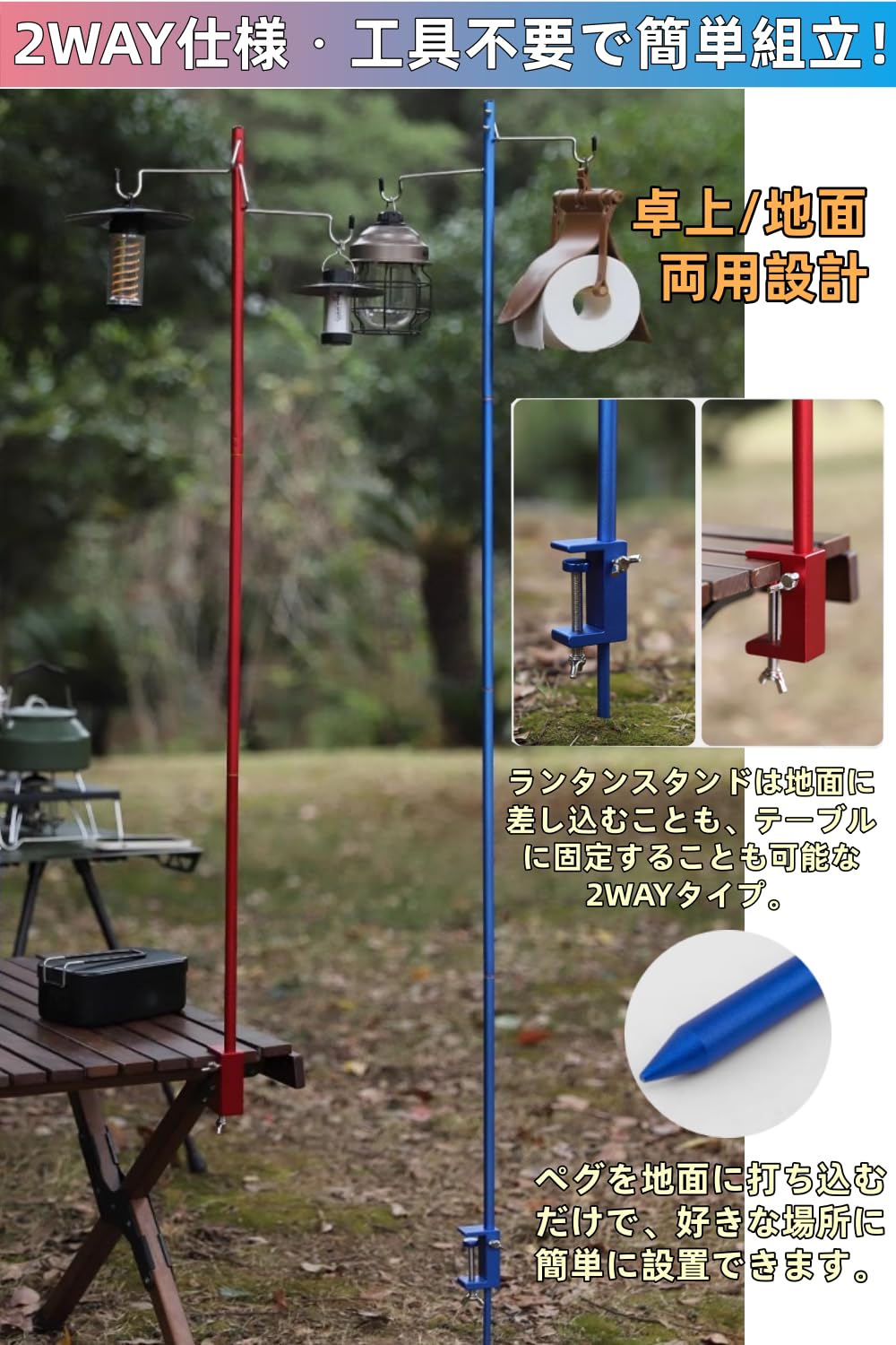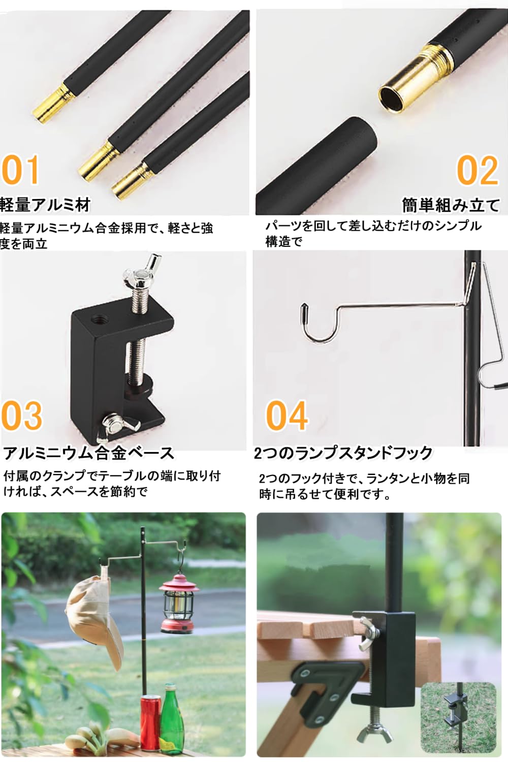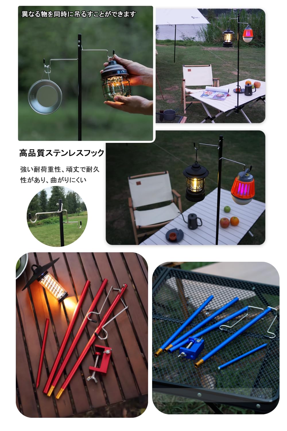 ALJ ランタンスタンド ランタンポール ランタンハンガー 打ち込み式 クランプ式 両用 軽量 収納袋付き テーブル固定 ランタンハンガー2個付 4段階高さ 組立簡単