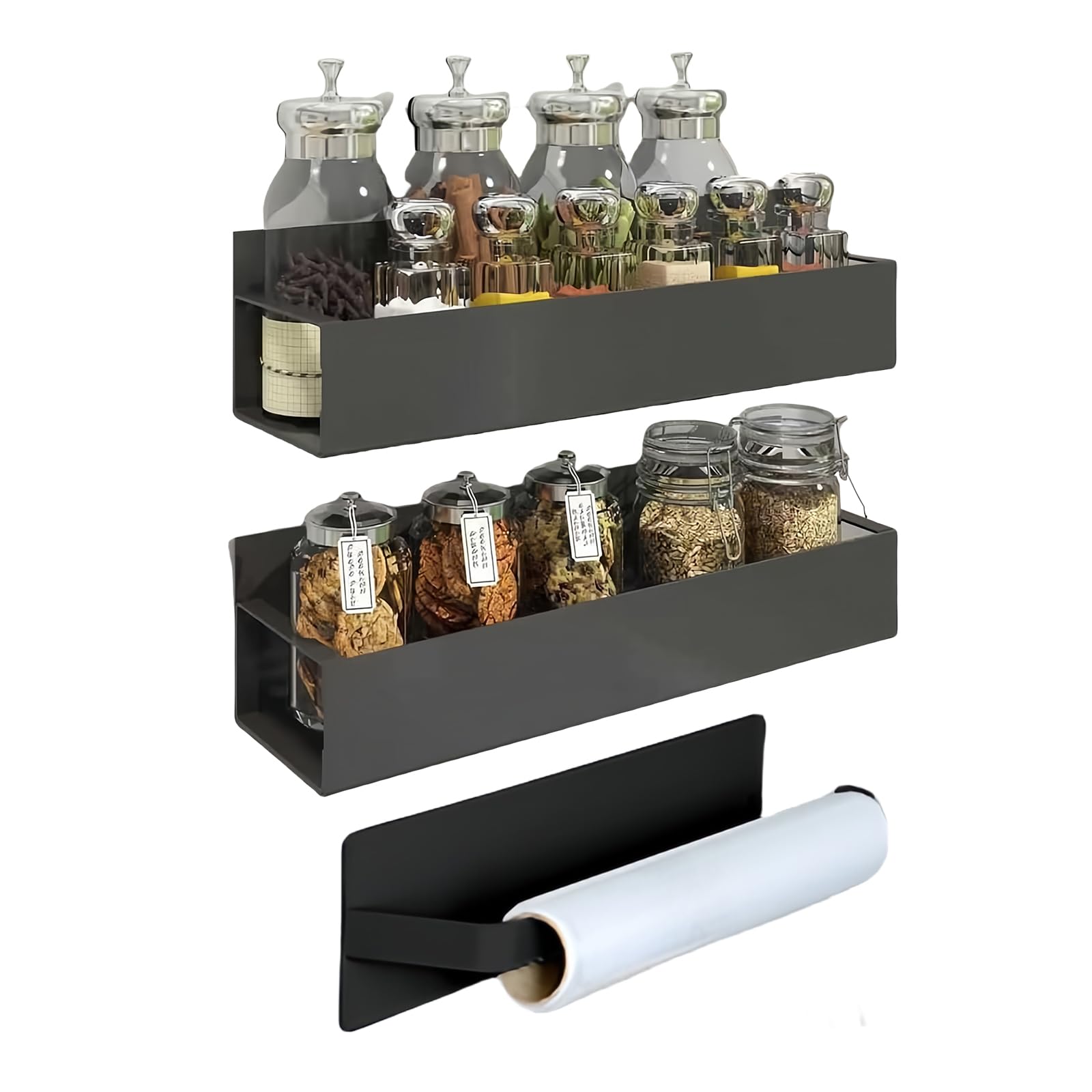 NAYIV マグネット 調味料ラック 冷蔵庫側収納 ブラックカーボンスチール 耐荷重10.8kg ワイド奥行デザイン ポータブル 取り外し可能 さびにくい キッチン ベッドルーム バスルーム収納 スパイスラック3段式 (ブラック)