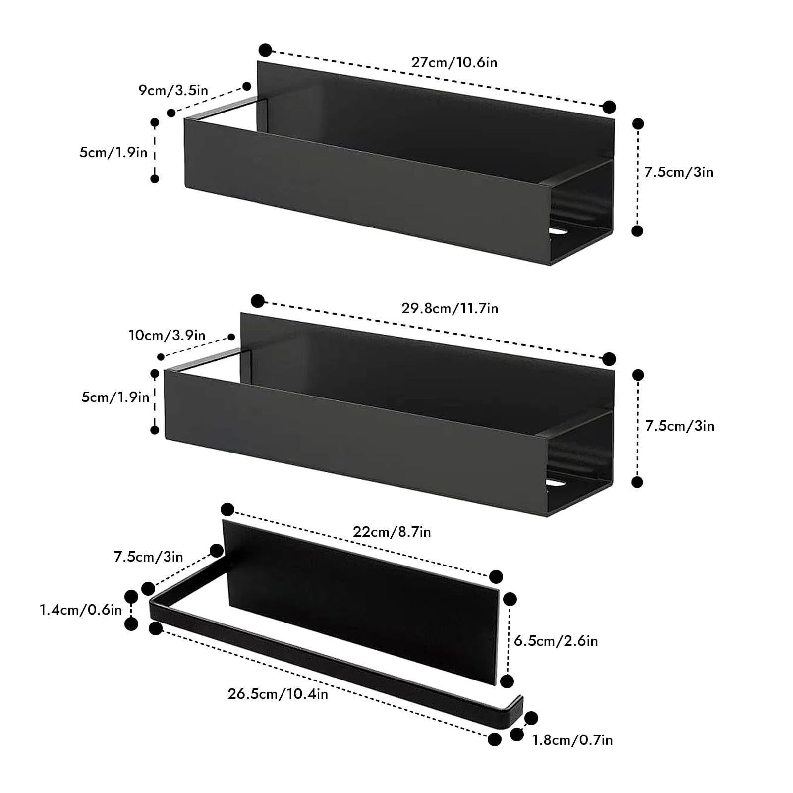 Wallfire マグネットラック 浴室用ラック 調味料ラック パック磁気スパイス ラック冷蔵庫可動冷蔵庫オーガナイザー金属磁気棚冷蔵庫用 3個セット