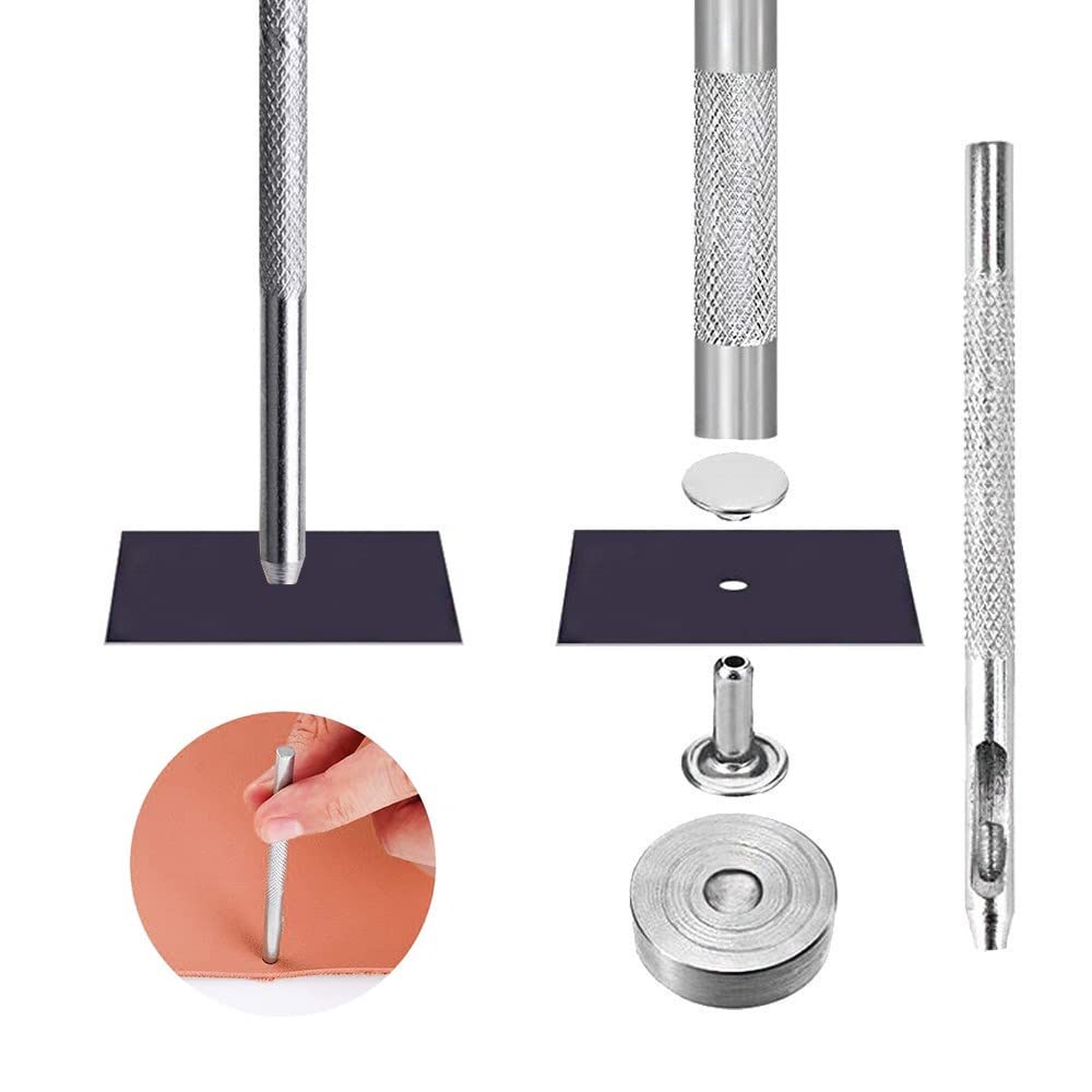 YFFSFDC レザークラフト カシメセット 3サイズ 4種色リベット スタッズ 底鋲 打ち具セット 丸形6mm 8mm 12mm 穴あけ 打ち具 打ち台 パーツ DIY 手作り ベルト 布革細工 靴 ジーンズカバン 収納ケース付き (360組)