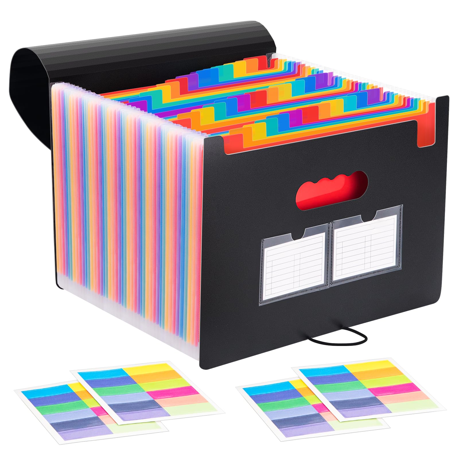 BTtime ドキュメントスタンド 25ポケットアコーディオンファイル A4 書類収納ケース 自立型 伸縮ファイル 蓋付き 区分けラベル付き 大容量 色別ファイリング 資料 書類 整理収納(黒)