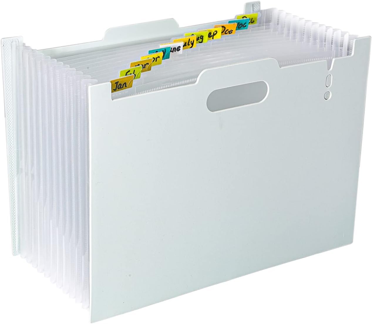 JiaWeiドキュメント a4ファイルボックス領収書ファイル書類せいり 分類 フォルダ 12仕切り白いポケット アコーディオン 持ち運び 大容量 収納ケースラベル付き 事務用品 教室