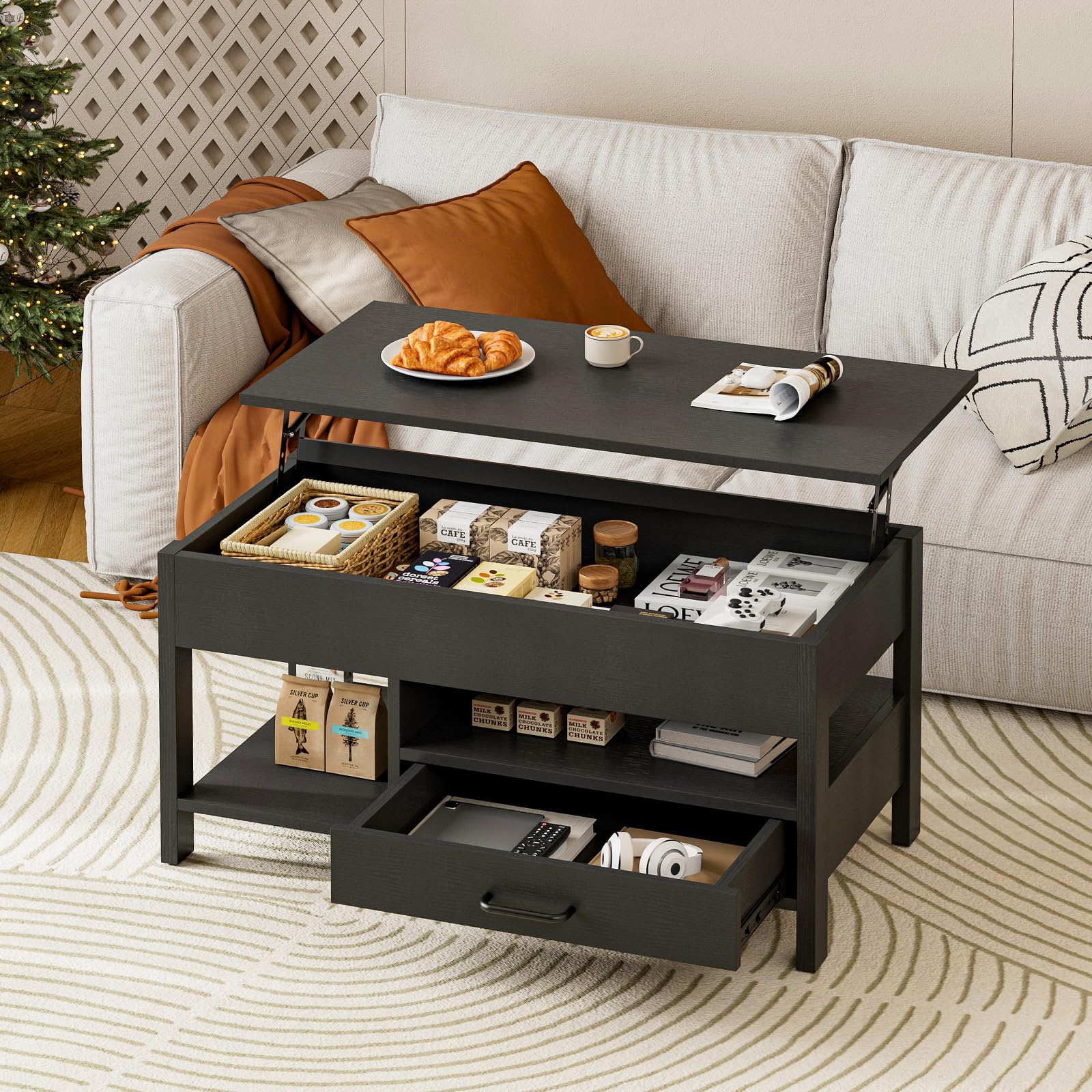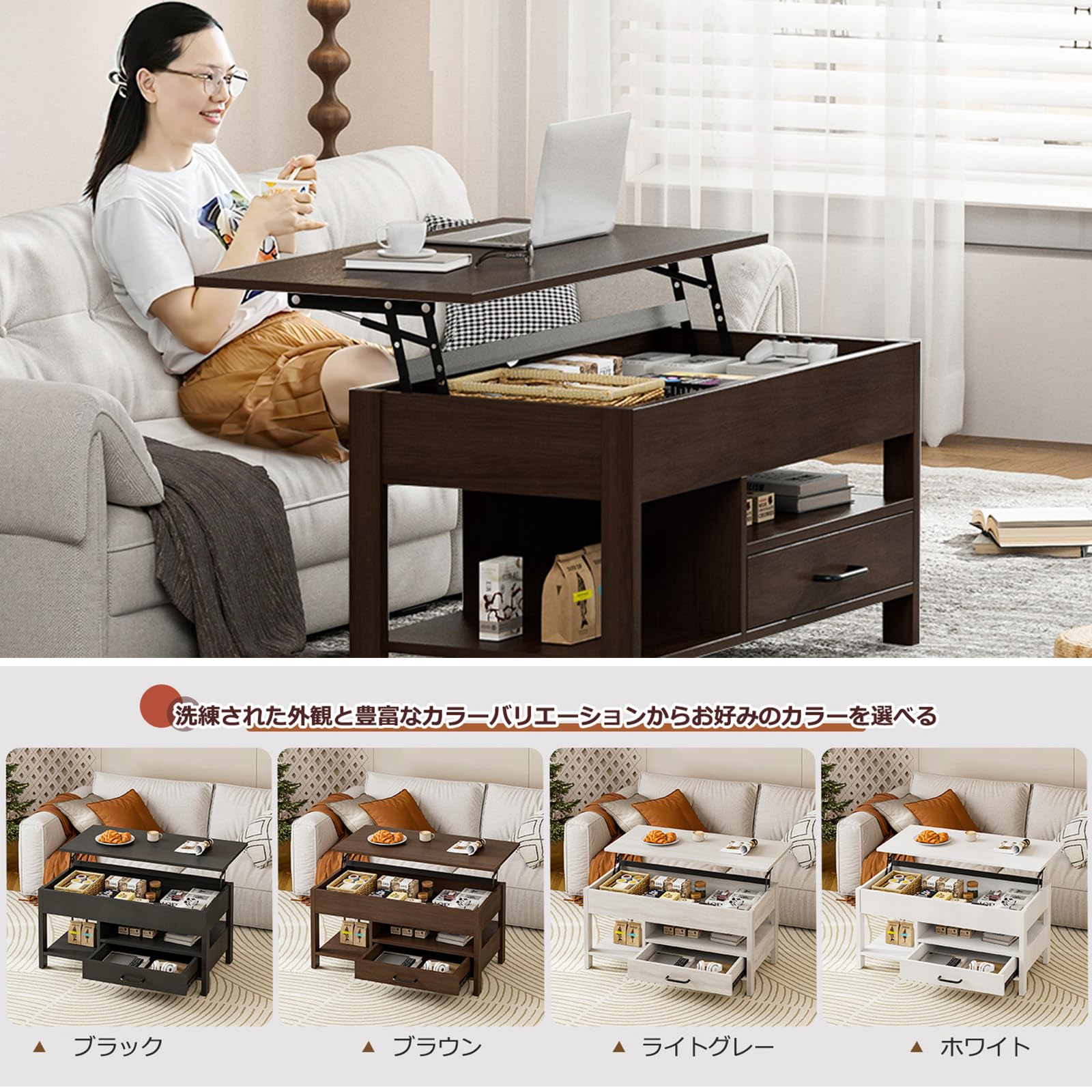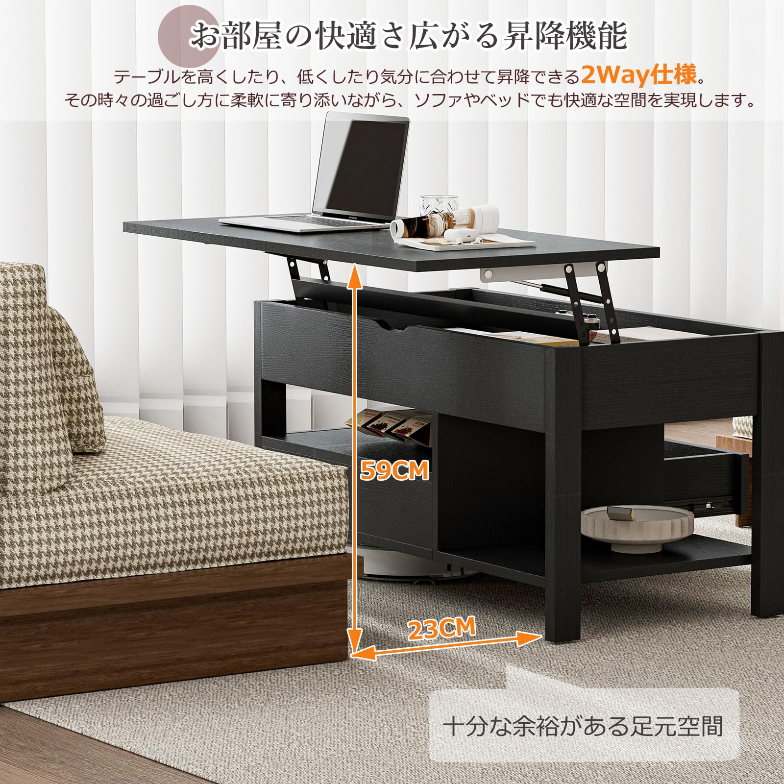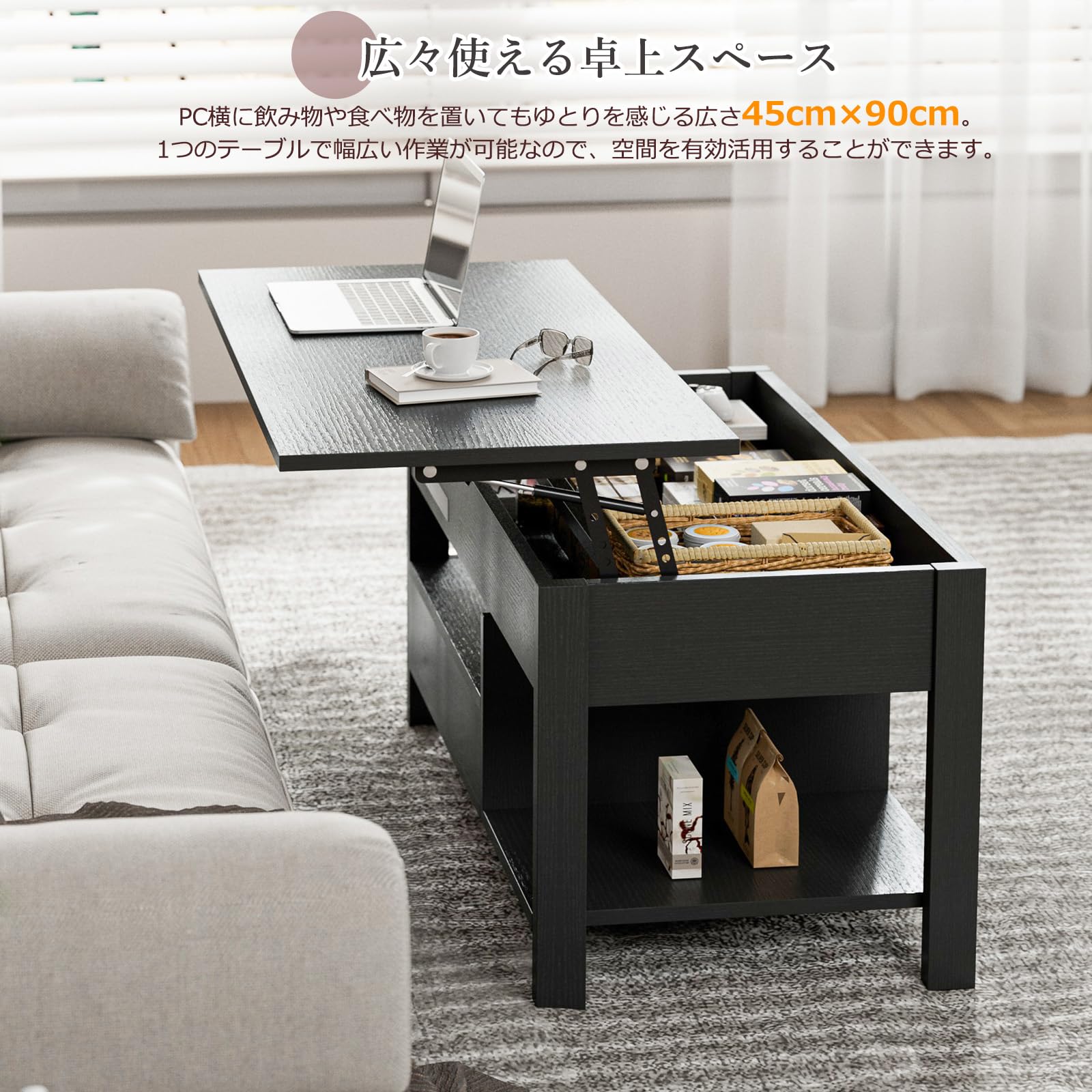 IKIFLY ローテーブル 昇降式 木製 コーヒーテーブル 引き出し付き テーブル 収納付き センターテーブル 大容量収納リビングテーブル 高さ調整リフティングテーブル 簡単開閉 ホンムオフィステーブル 昇降式 コンパクト リビングルーム オフィス用 在宅勤務 食事一人暮らし 幅90×奥行45×高さ46.2-59cm (ブラック)