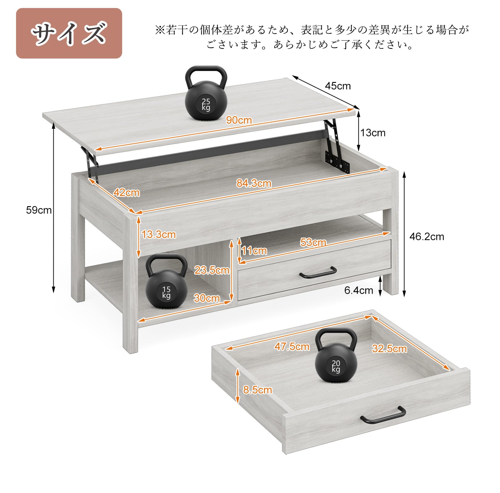 IKIFLY ローテーブル 昇降式 木製 コーヒーテーブル 引き出し付き 収納付き センターテーブル 大容量収納リビングテーブル 高さ調整リフティングローテーブル 簡単開閉 ホンムオフィステーブル リビングルーム オフィス用 在宅勤務 食事一人暮らし 幅90×奥行45×高さ46-59cm (グレー)