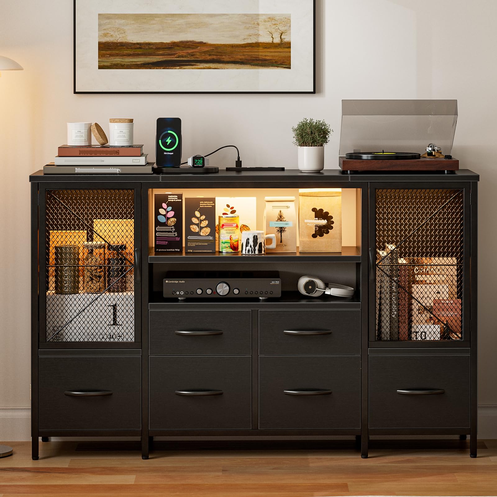 IKIFLY チェスト収納 箪笥 棚付き リビング収納チェストLEDライト付きおしゃれ 収納ケースタンス 引き出し 大容量 北欧 USBポート付き洋服タンス 布製 テレビボード 収納ボックス マルチチェス 整理タンス 寝室収納 一人暮らし3段6杯 【幅100×奥行30×高さ82cm】
