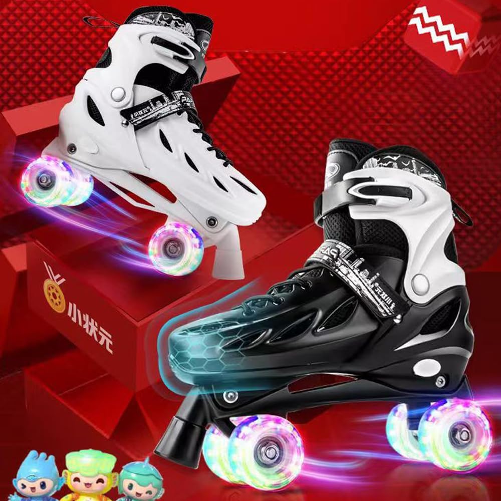 インラインスケート 初心者向け 子供用 ローラースケート Inline skate 子供 ローラー スケート 大人用 サイズ調整可能 ローラーシューズ 発光 静音 通気 フラッシュホイール アウトドア プレゼント S-L(ブラック、M)