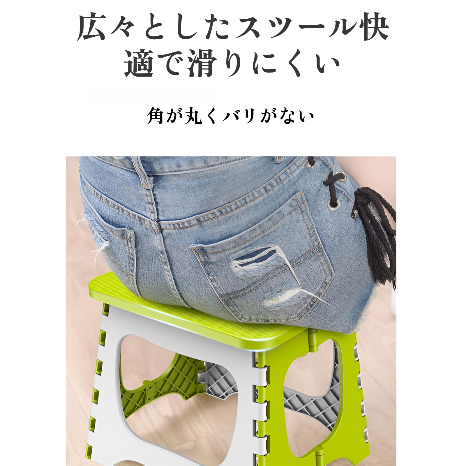 [lalarimi]【椅子 ポータブル 折りたたみスツール】プラスチック製 アウトドア/学習/家庭用対応 グリーン シンプルデザイン 軽量コンパクト ワンタッチ開閉 屋外耐久 洗える 収納便利 防滑加工 キャンプ/ベランダ用