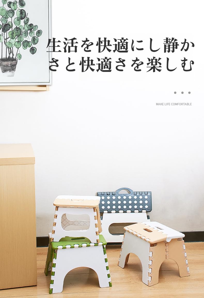 [lalarimi]【椅子 ポータブル 折りたたみスツール】プラスチック製 アウトドア/学習/家庭用対応 グリーン シンプルデザイン 軽量コンパクト ワンタッチ開閉 屋外耐久 洗える 収納便利 防滑加工 キャンプ/ベランダ用