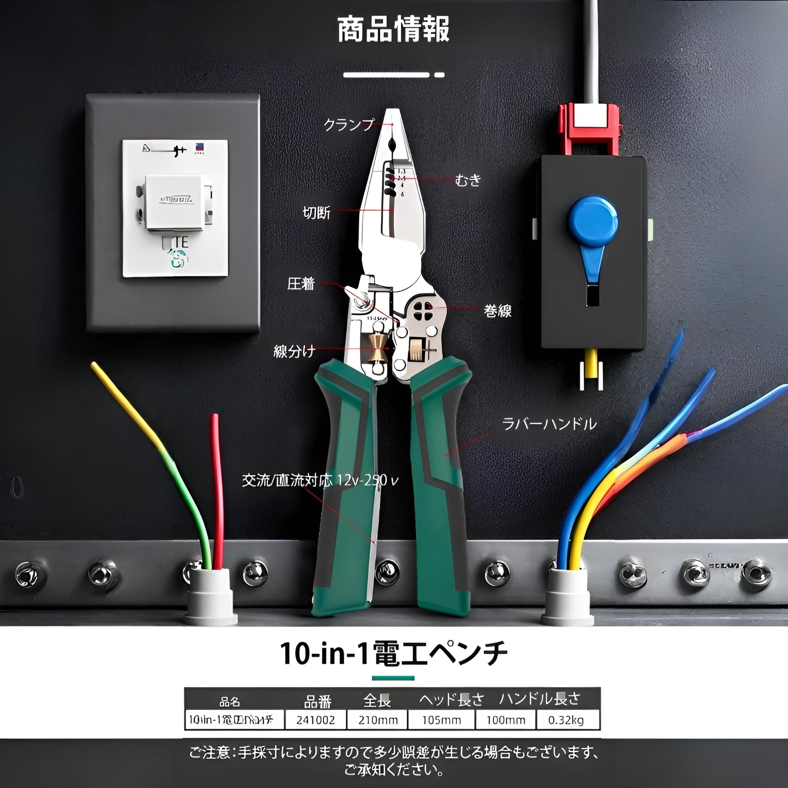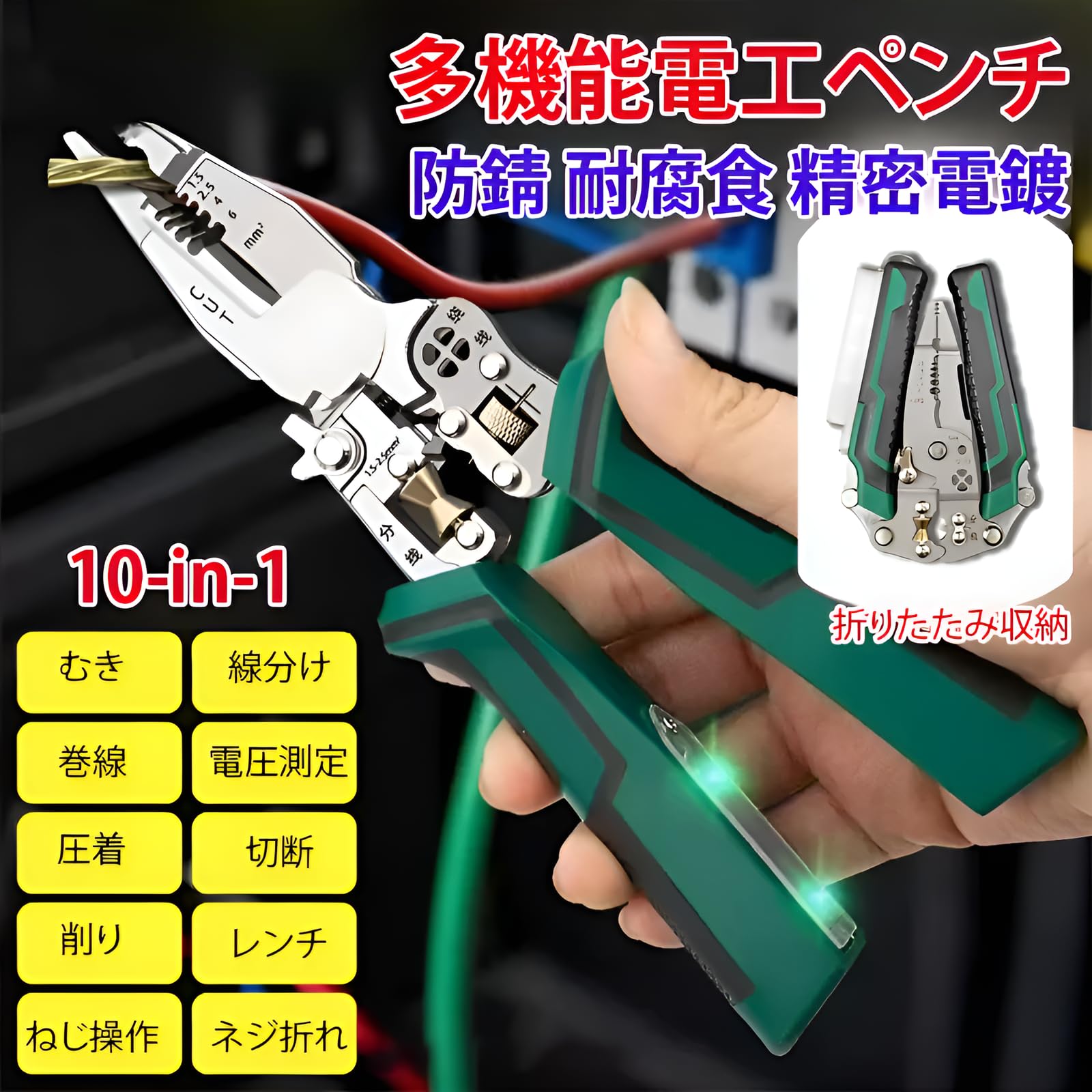 [ahomeone]多機能電工ペンチ ワイヤーストリッパー 折りたたみ式ツール|10-in-1プロ仕様&耐摩耗鋼製|電気工事/DIY修理に最適|コンパクト収納可能な電線クリンパー ストリッパー ツイスター一体型