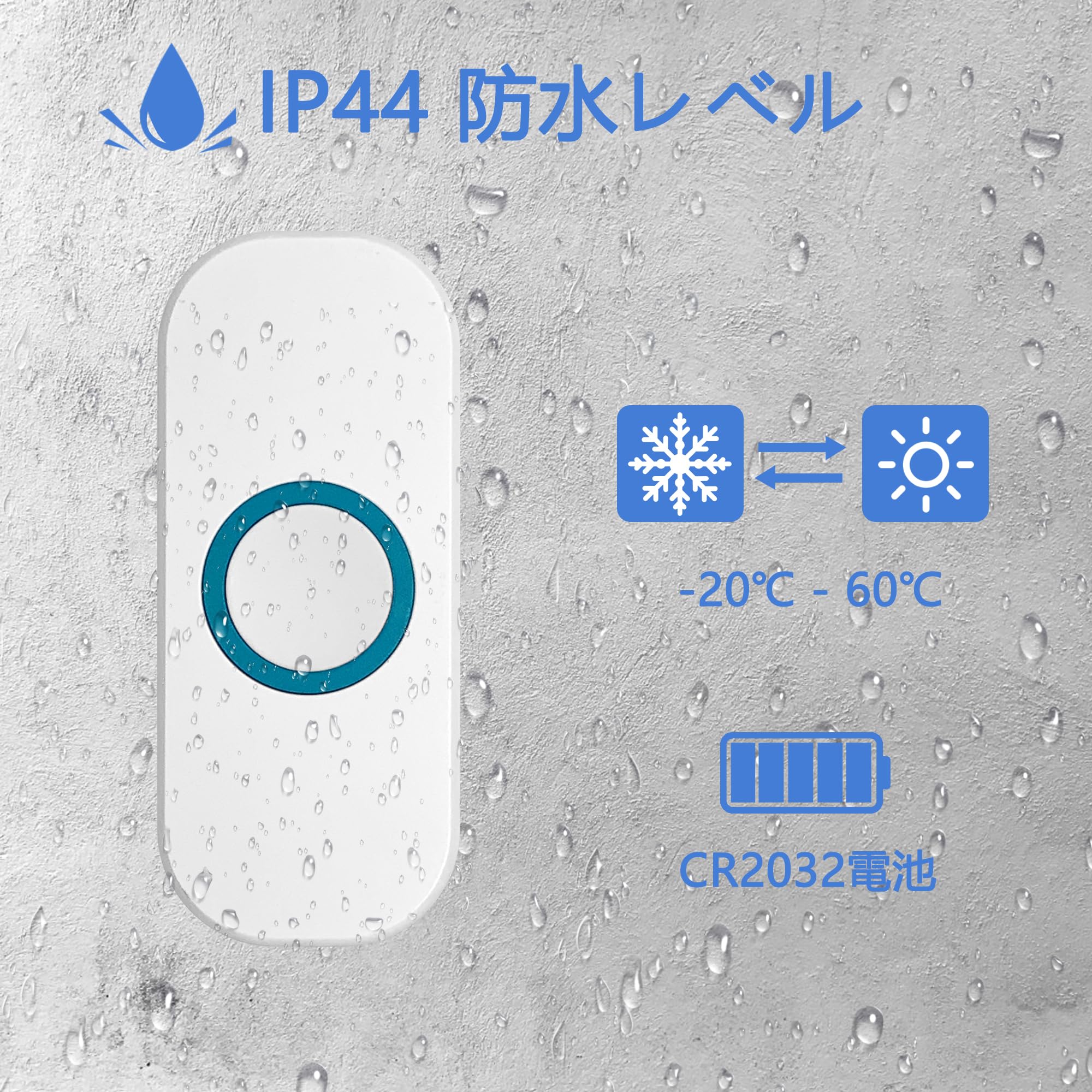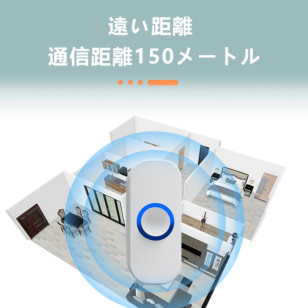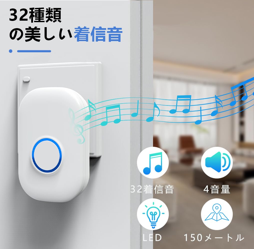 ワイヤレスチャイム 玄関チャイム 無線 防水 呼び鈴 ドアベル インターホン ワイヤレス 工事不要 ドアホン (1送信機 2受信機)