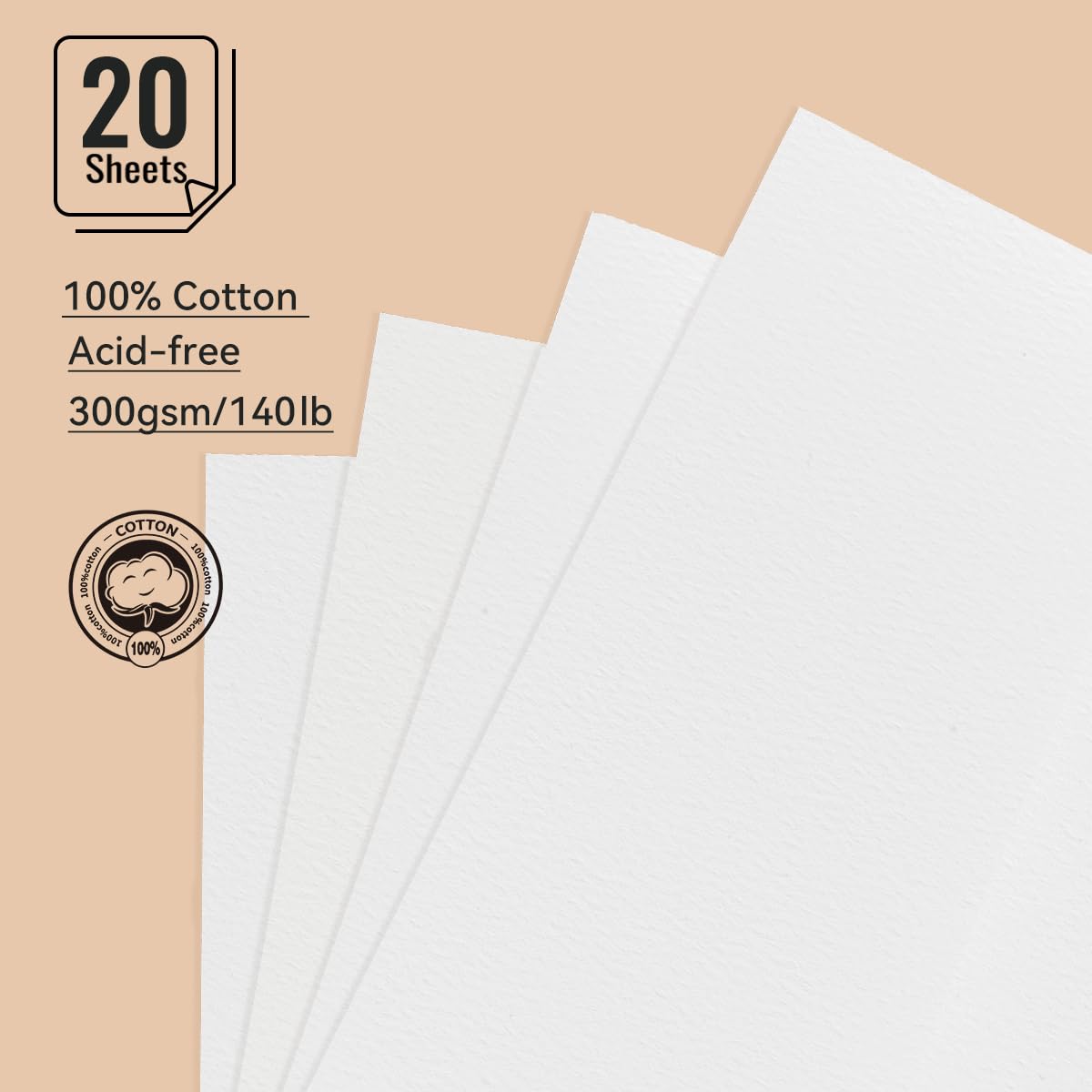 Lightwish 正方形 水彩日記帳 コールドプレス 140ポンド/300gsm 無酸性 コットン100% 水彩紙 スケッチブック 20枚 5.1×5.1インチ アーティストや学生に最適
