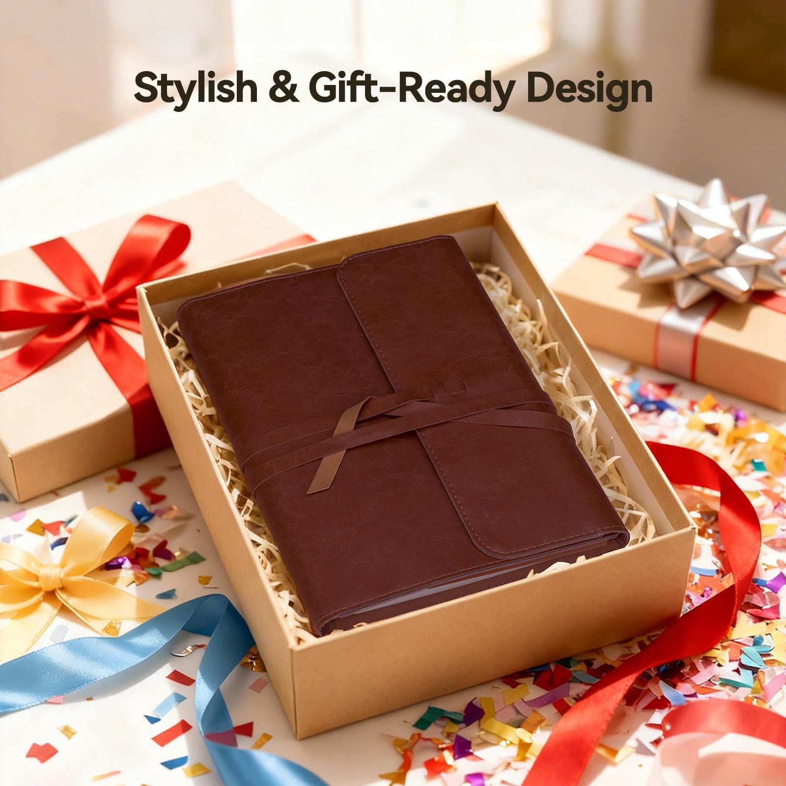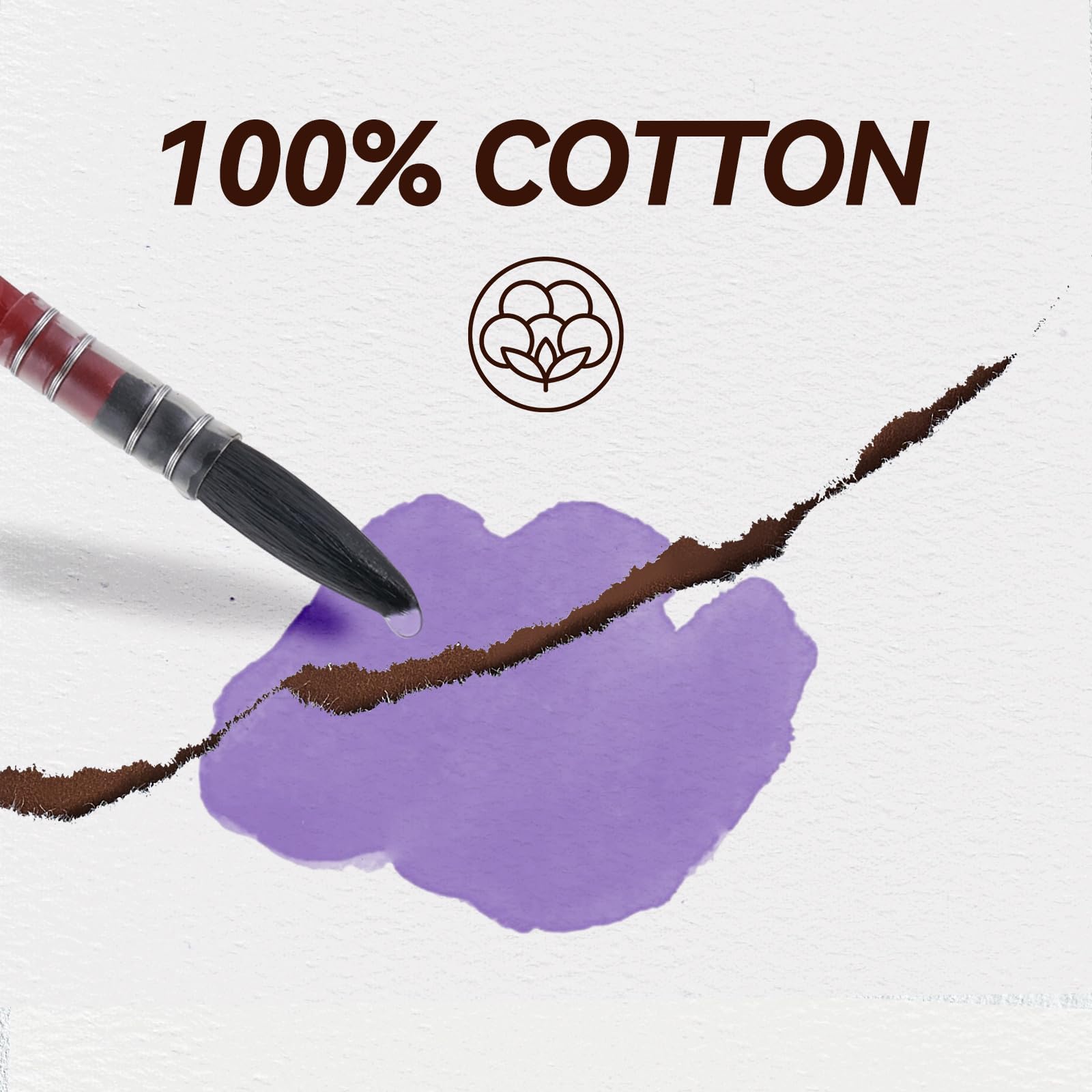 Lightwish 水彩日記帳 綿100% 水彩紙 195 x 130mm 20枚 300g 細目 無酸性 水彩絵の具、グワッシュ、アクリル用画材(茶色のカバー)
