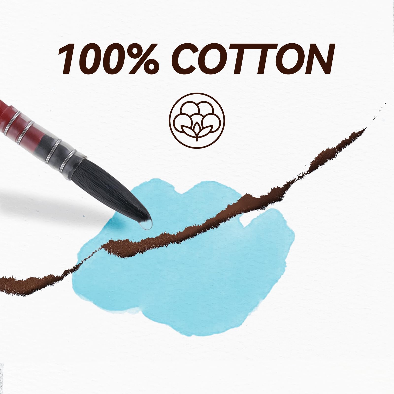 Lightwish 水彩日記帳 綿100% 水彩紙 195 x 130mm 20枚 300g 細目 無酸性 水彩絵の具、グワッシュ、アクリル用画材(茶色のカバー)