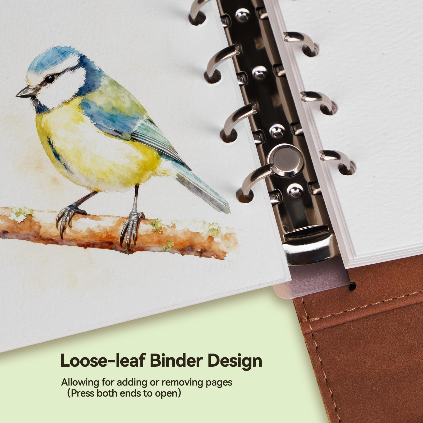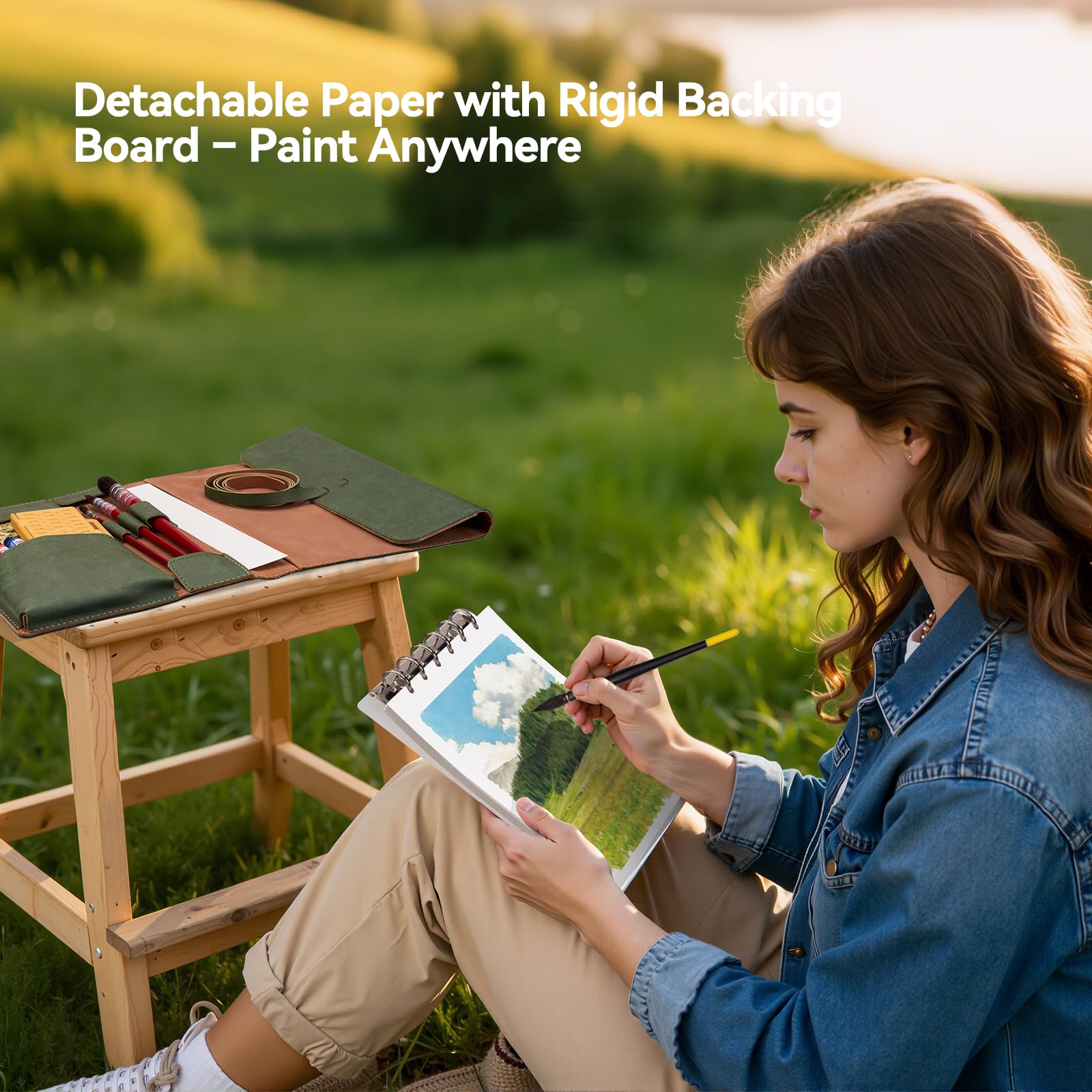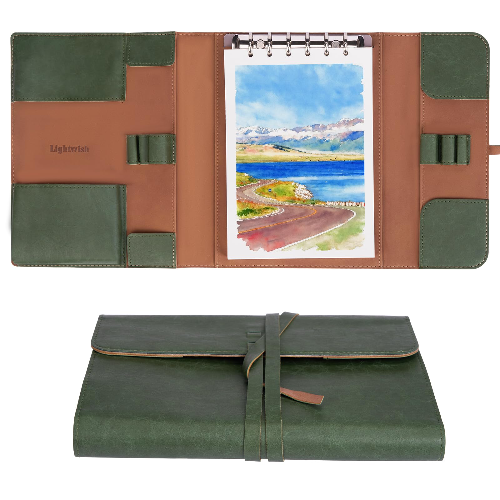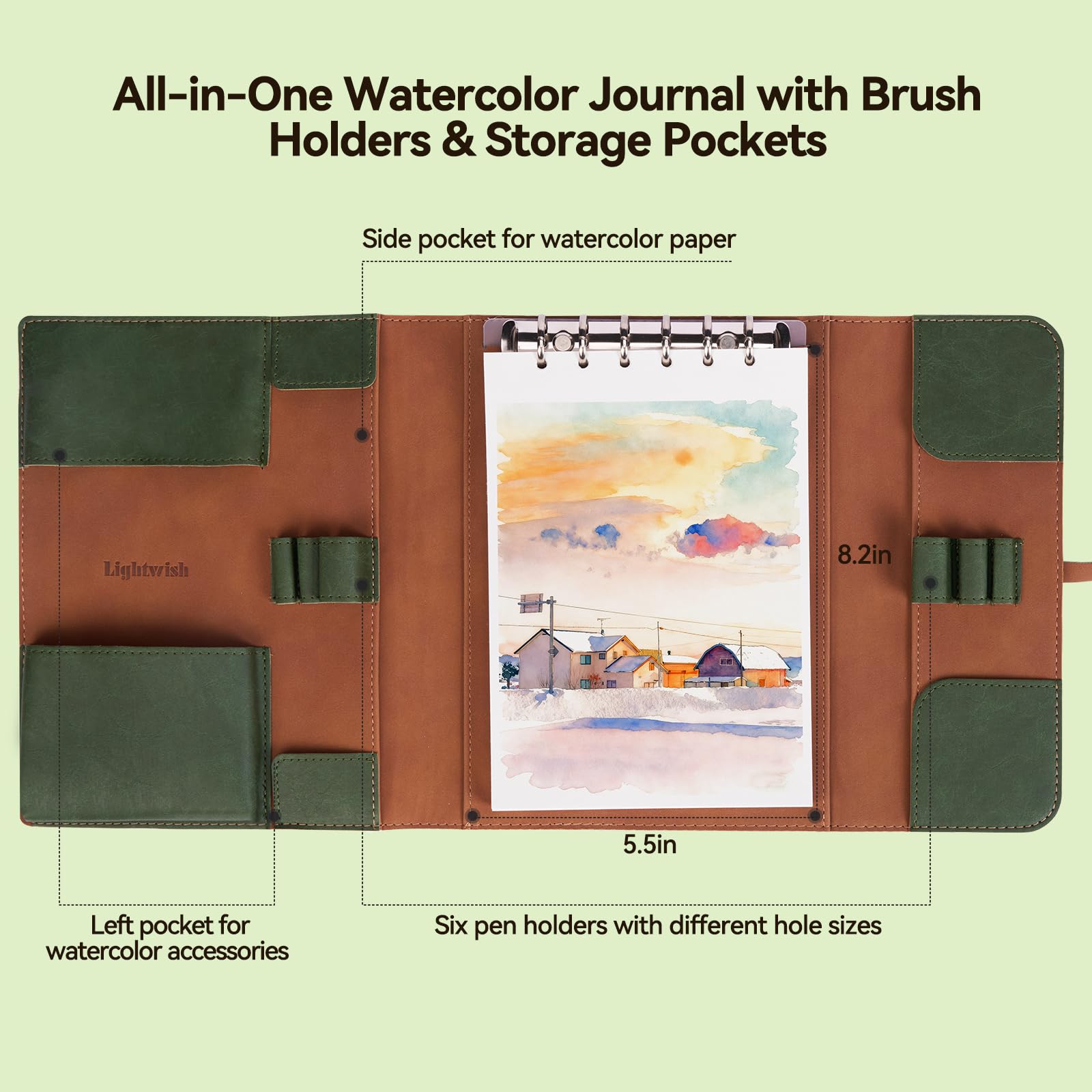 Lightwish 水彩パッド - A5 20枚 綿100% 300GSM ホットプレス紙 | 裏板で取り外し可能 | オールインワンの旅行用水彩日記帳 ブラシホルダー&収納ポケット付き