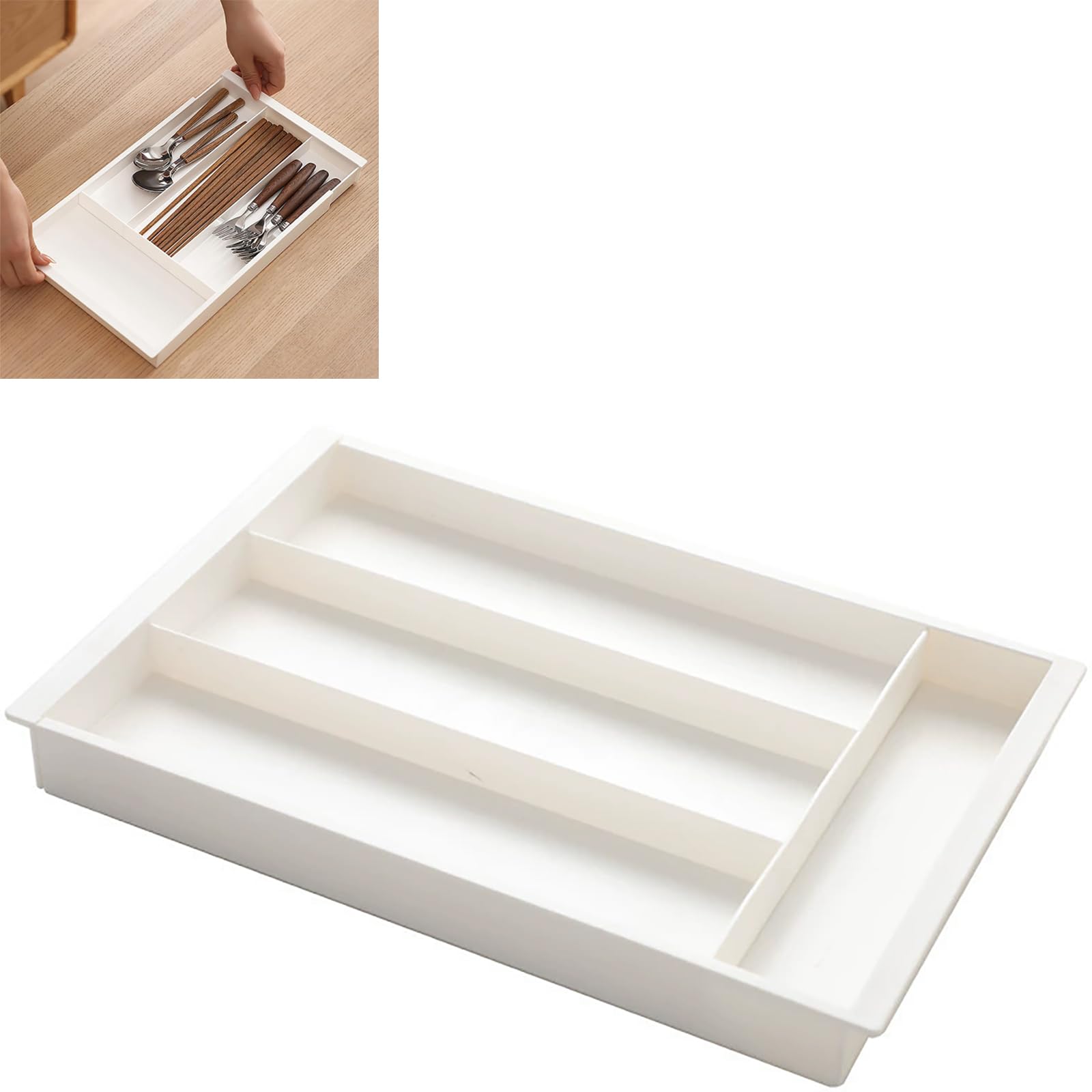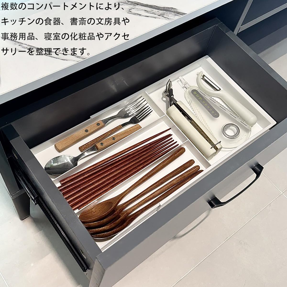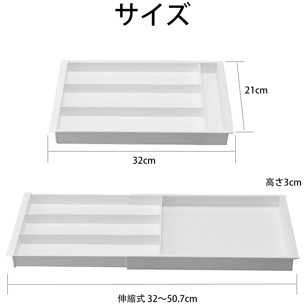エクステンドトレー 伸縮式収納ボックス 引き出しの仕切り デスクトップの整理 文房具 収納ケース キッチン収納 小物収納 伸縮範囲32-50.7cm 調節可能 ホワイト 32*21*3cm