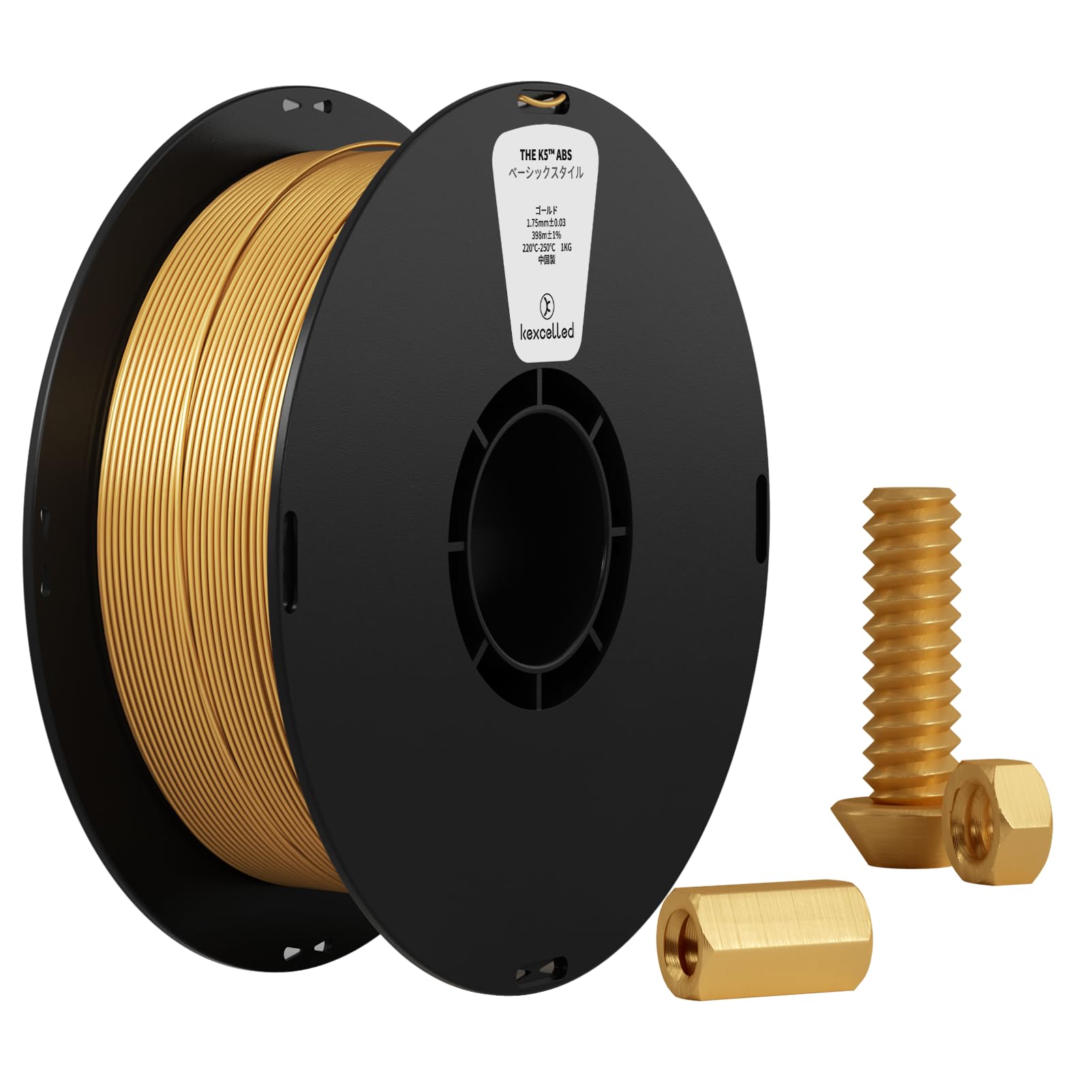 ABS 3Dプリンターフィラメント素材 Kexcelled 優秀な総合性能 1.75mm径 ほとんどの3Dプリンターに適合 スプール造形材料 寸法精度+/- 0.03mm 正味量1kg(2.2lbs)ゴールド