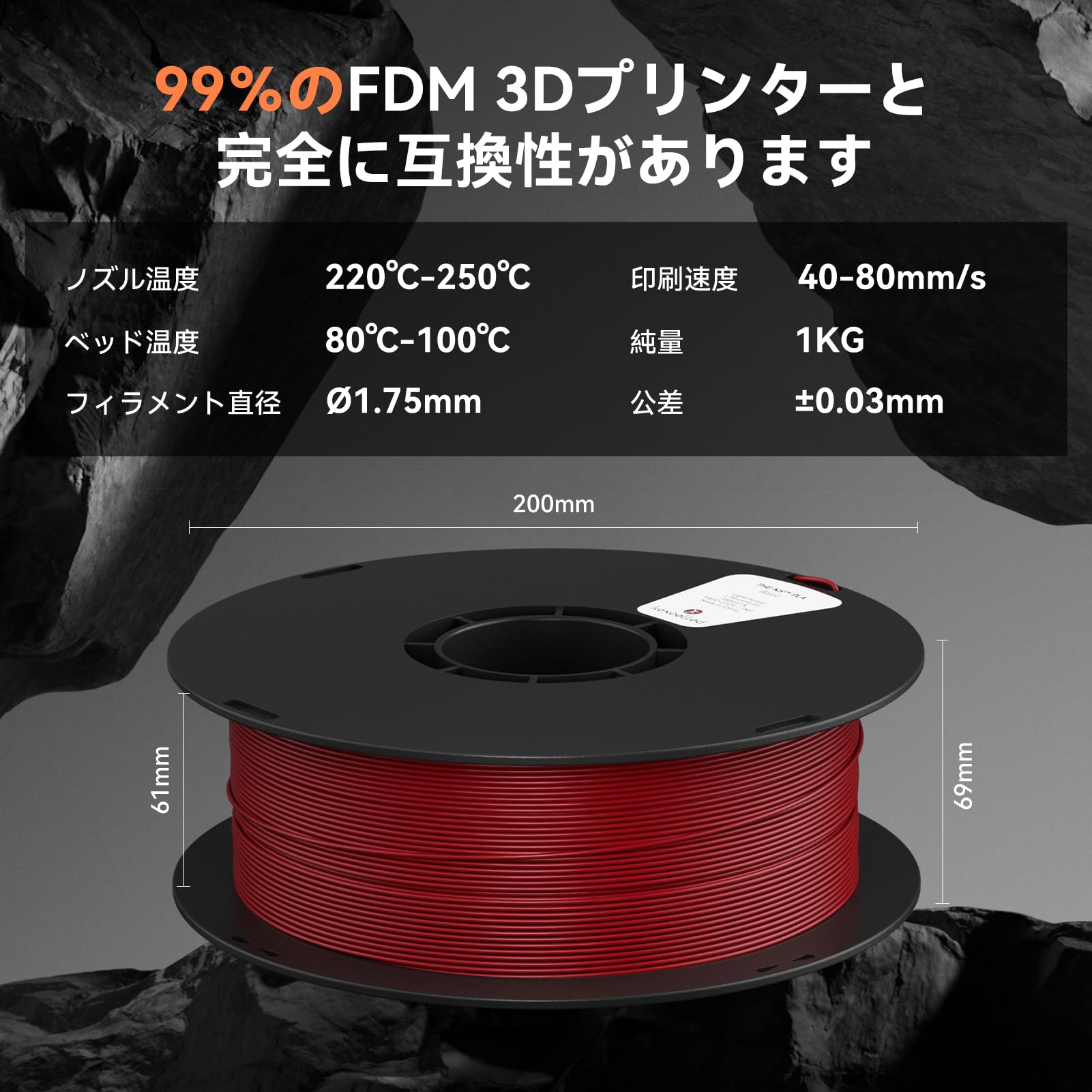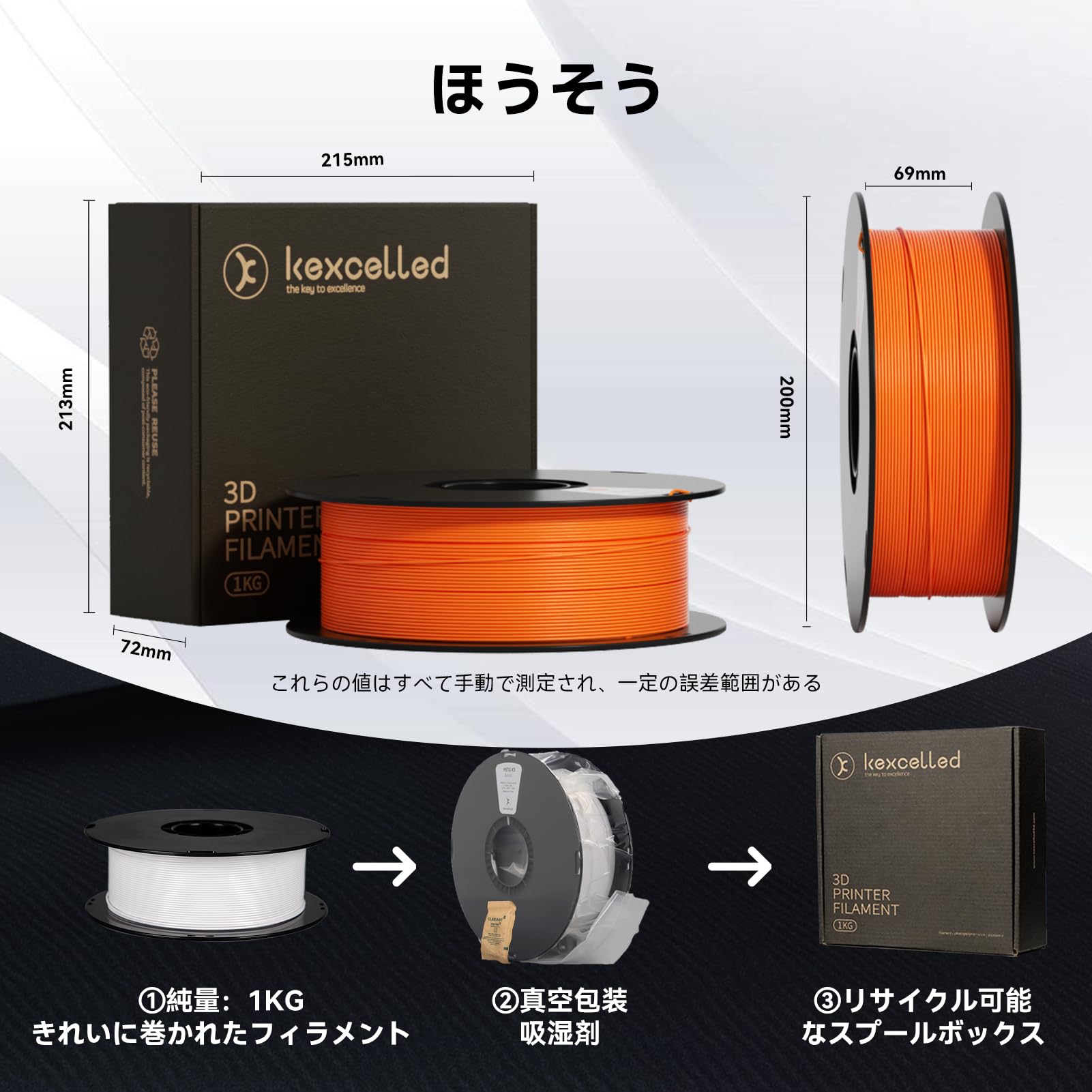 kexcelled ABS ラピッド3Dプリンティング フィラメント スプール 高速印刷 高速冷却 より高い靭性 精度±0.03mm ほとんどのFDM 3Dプリンターと互換性があり
