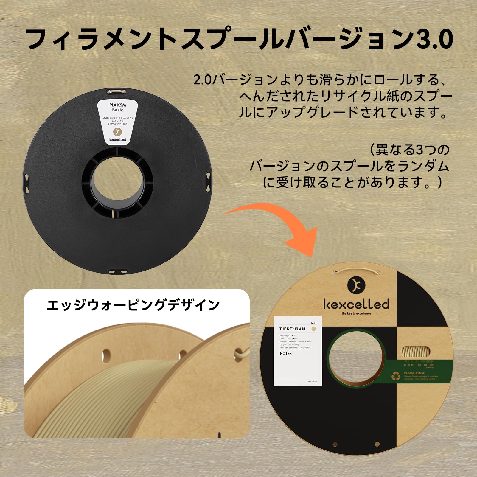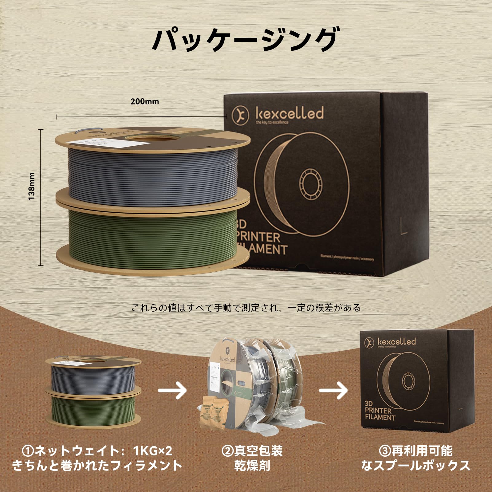 Kexcelled マット PLA つや消しの質感 紙ボビン 1KG×2巻セット 3Dプリンターフィラメント素材 1.75mm 3Dプリンター スプール造形材料 +/- 0.03mm ブラック