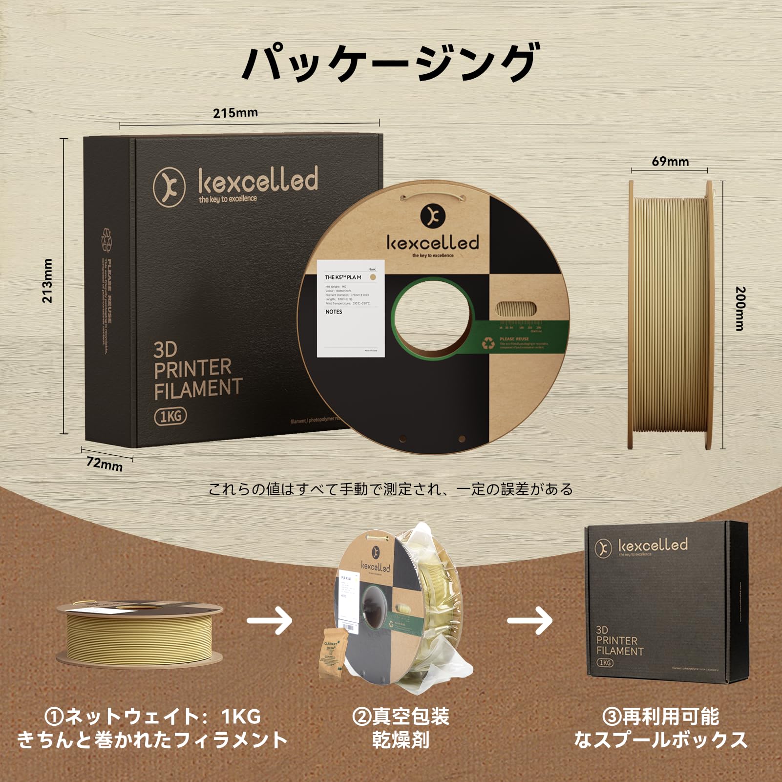 PETG 3Dプリンターフィラメント素材 Kexcelled 1.75mm径 3Dプリンター用 低温で使用できる スプール造形材料 使いやすい 寸法精度+/- 0.03mm 正味量1kg(2.2lbs) ブラック