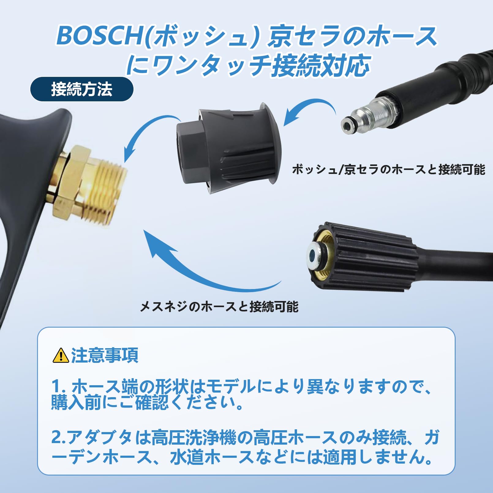 DERASL ショートガン BOSCH(ボッシュ) 京セラ 用 スイベル 高圧洗浄ショートガン M22 14mm クイックコネクトアダプター + 5段階マルチスプレー ノズル付属 4000 PSI(約28 MPa) 0〜65度調整可能ノズル bosch Kyocera に対応 ガン