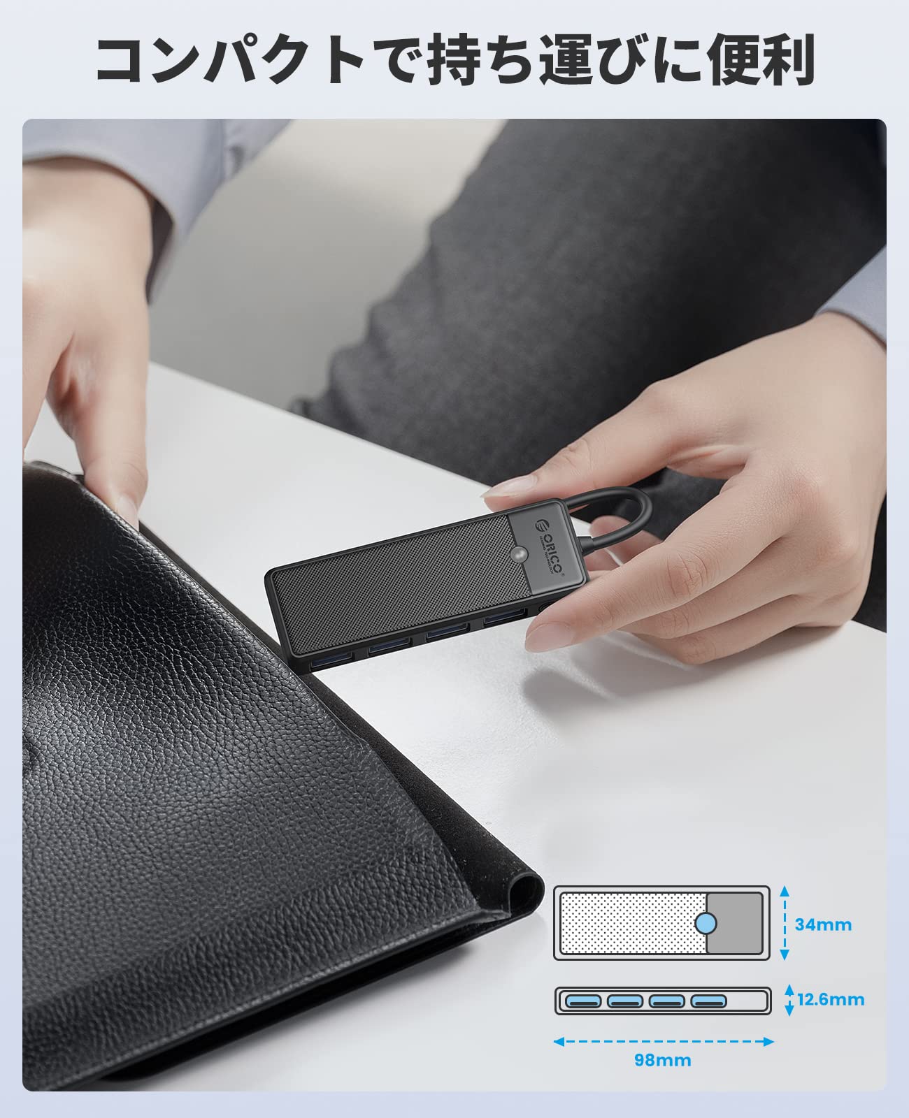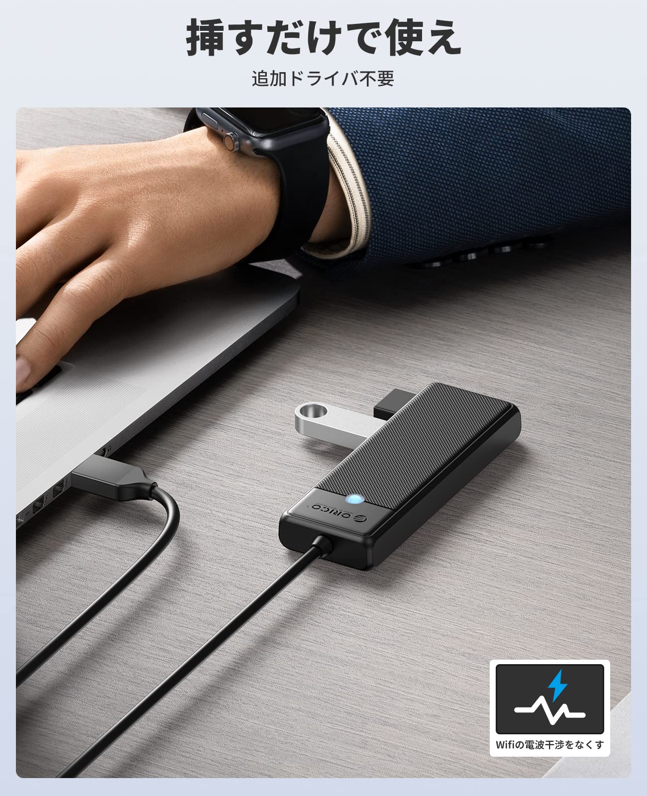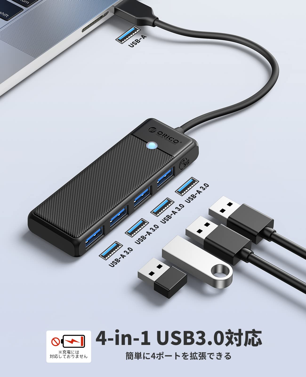 ORICO USB ハブ USB3.0 USB 拡張 4ポート 15cm ケーブル 軽量・コンパクト USB 増設 5Gbps高速転送 バスパワー MacBook/iMac/Surface Pro 等 ノートPC 他対応 テレワーク 在宅勤務 PAPW4A-U3-015
