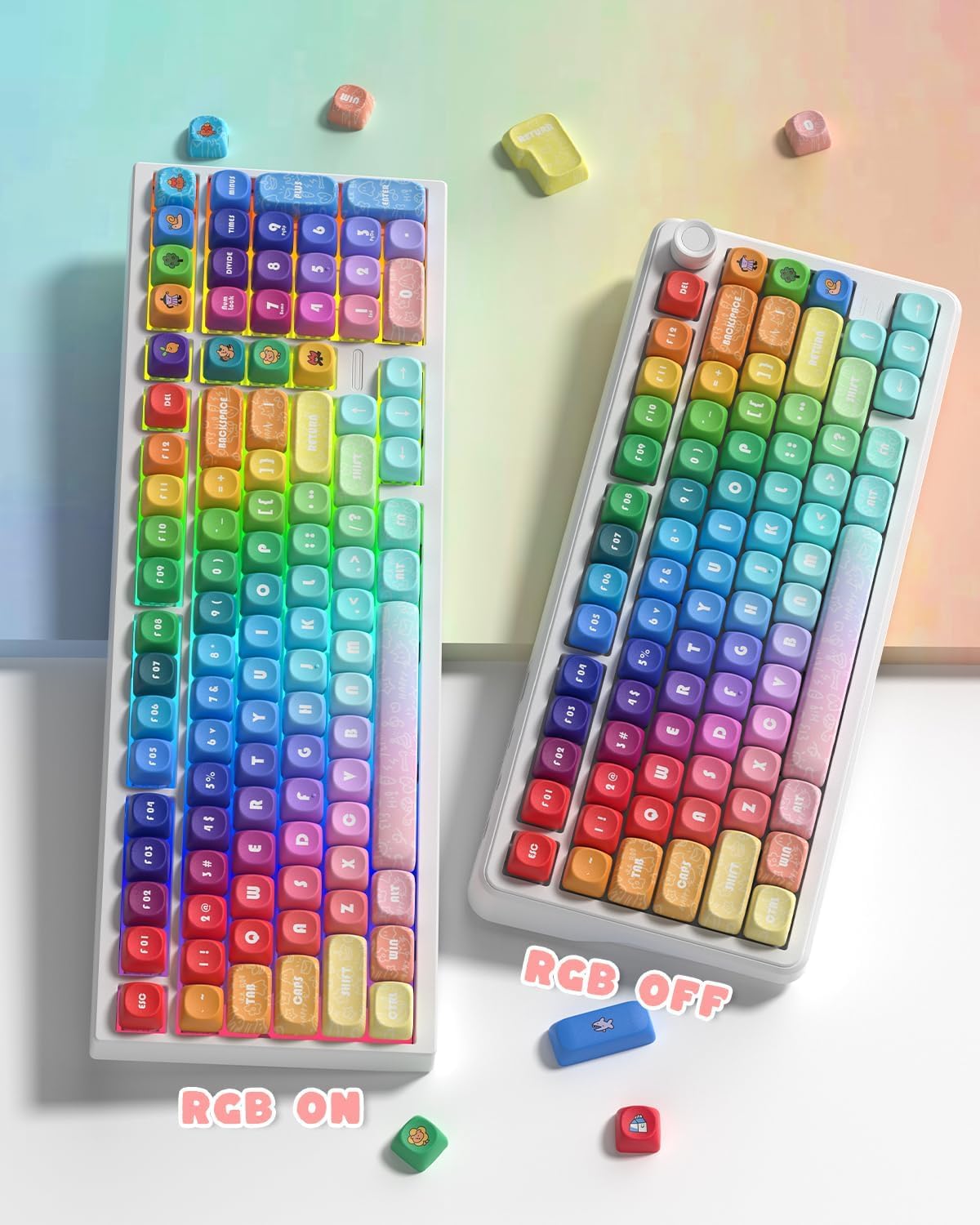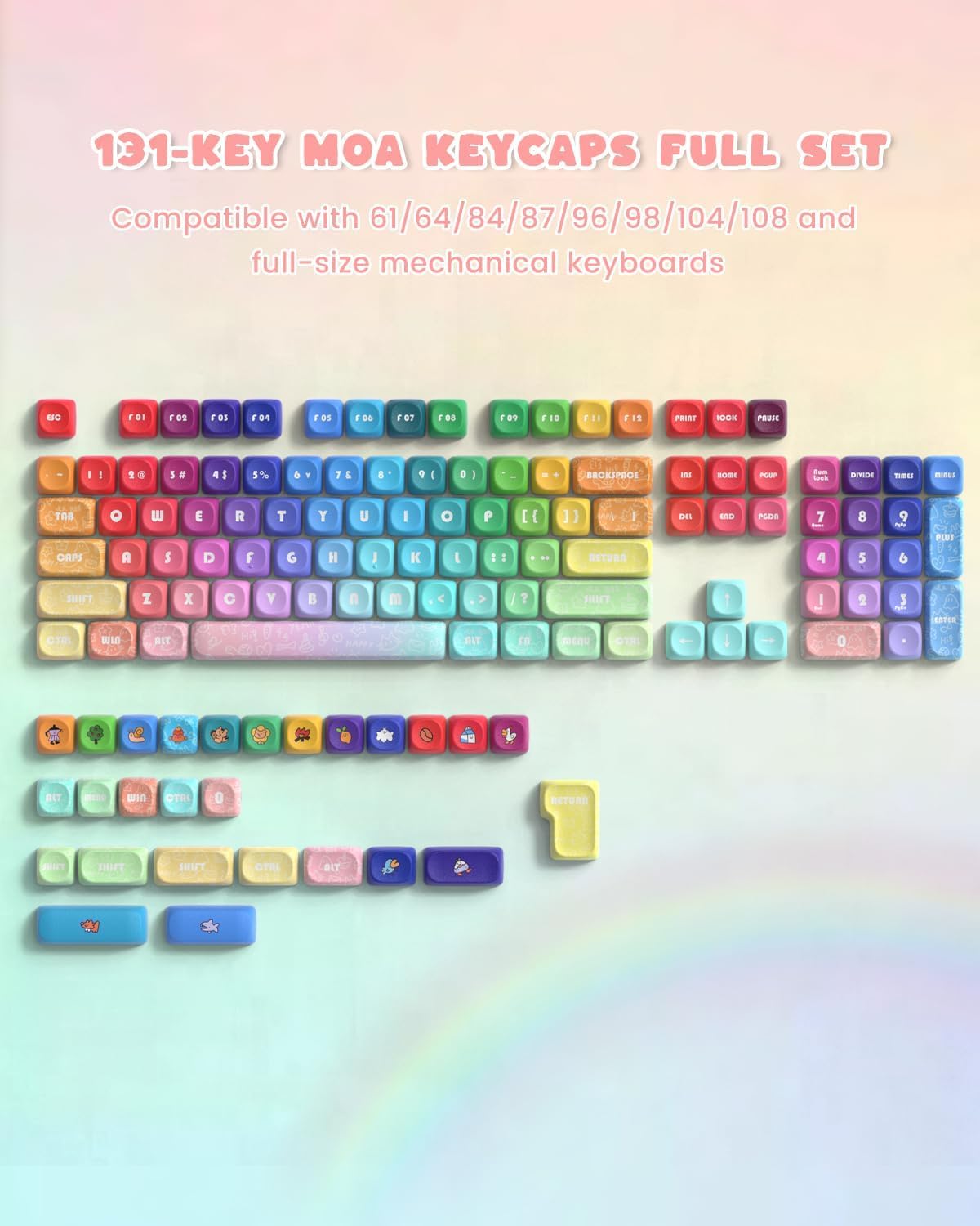 キーキャップ 131キー Womier 可愛いPBTキーキャップ、レインボーグミベアキーキャップセット MOAプロファイル、昇華印刷キーボードキーキャップ 60%、65%、75%、80%、96%、100%レイアウトのMXスイッチ対応 メカニカルキーボード用