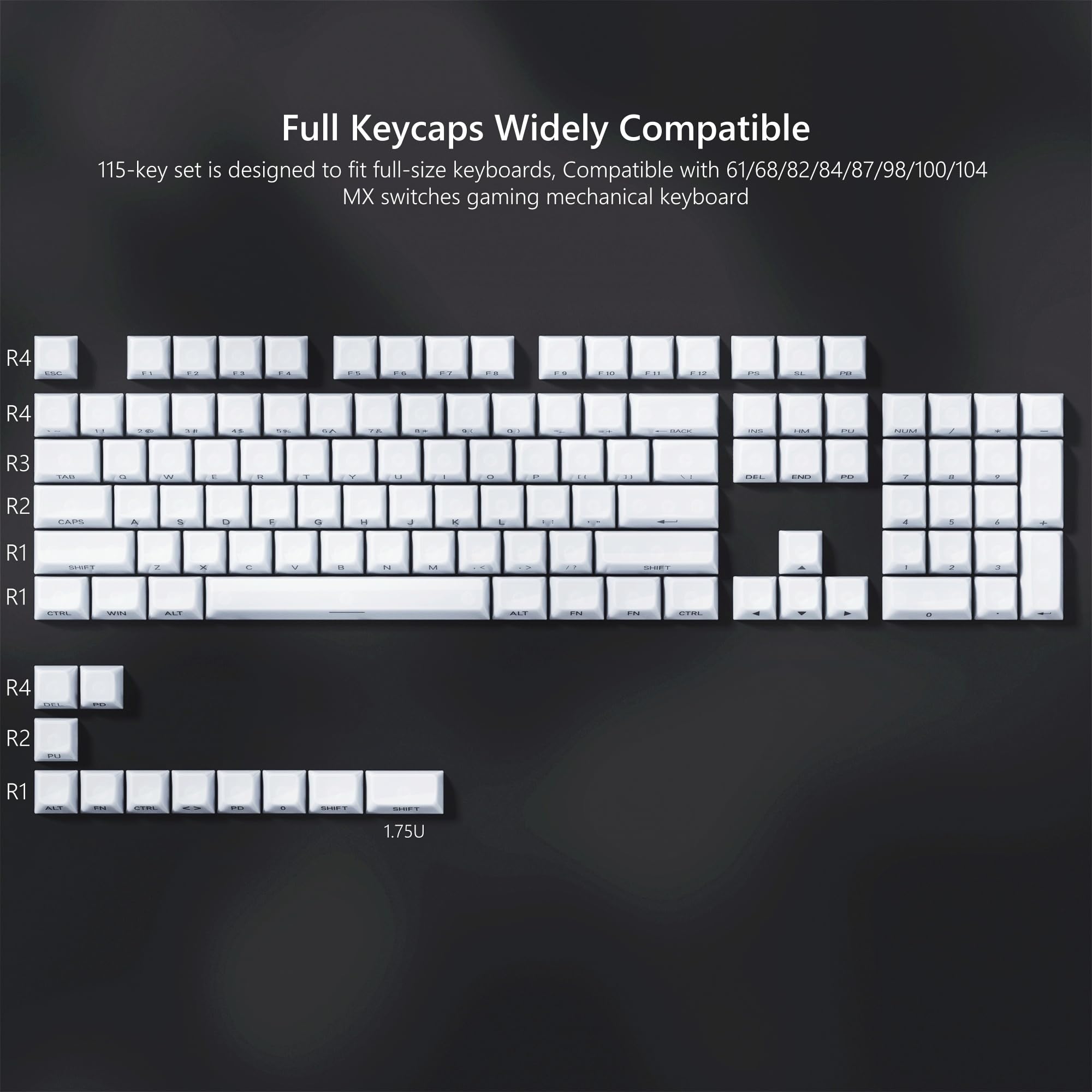 Ranked 昇華型プレミアムキーキャップセット | 厚さ1.45mm PBT | チェリープロファイル カスタムメカニカルキーボード用 (9009 169キー)