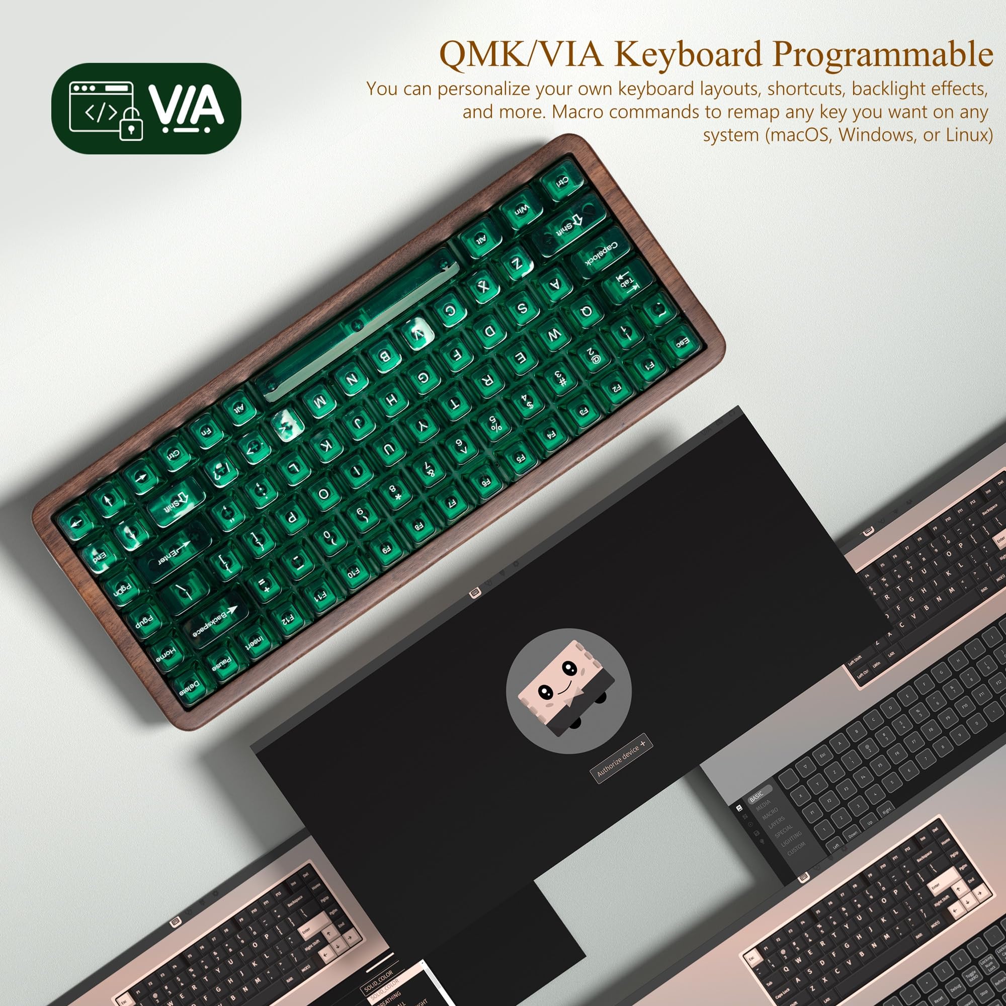 Womier 75% メカニカルキーボード ワイヤレス QMK/VIA、WD75 V2 木製ゲーミングキーボード 8000mAhバッテリー、トライモードカスタムキーボード RGBホットスワップ可能 半透明クリアキーキャップ付き POMリニアスイッチ