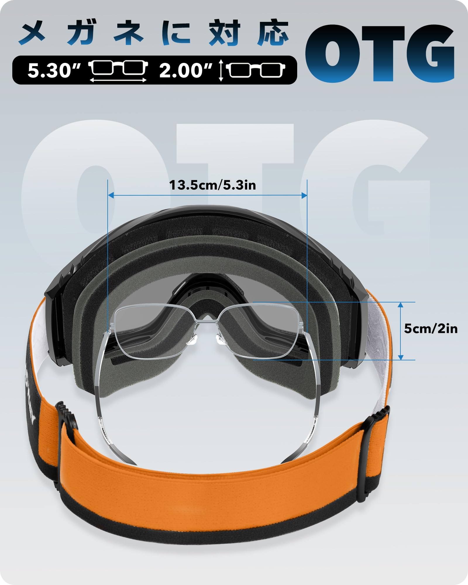 [Odoland] スノーゴーグル 2層球面レンズ 曇り止め OTGメガネ対応 ミラーレンズ UV400 ダブルレンズ スノーボードゴーグル 通気 防風 防塵 防雪 軽量 耐衝撃 男女兼用 大人用