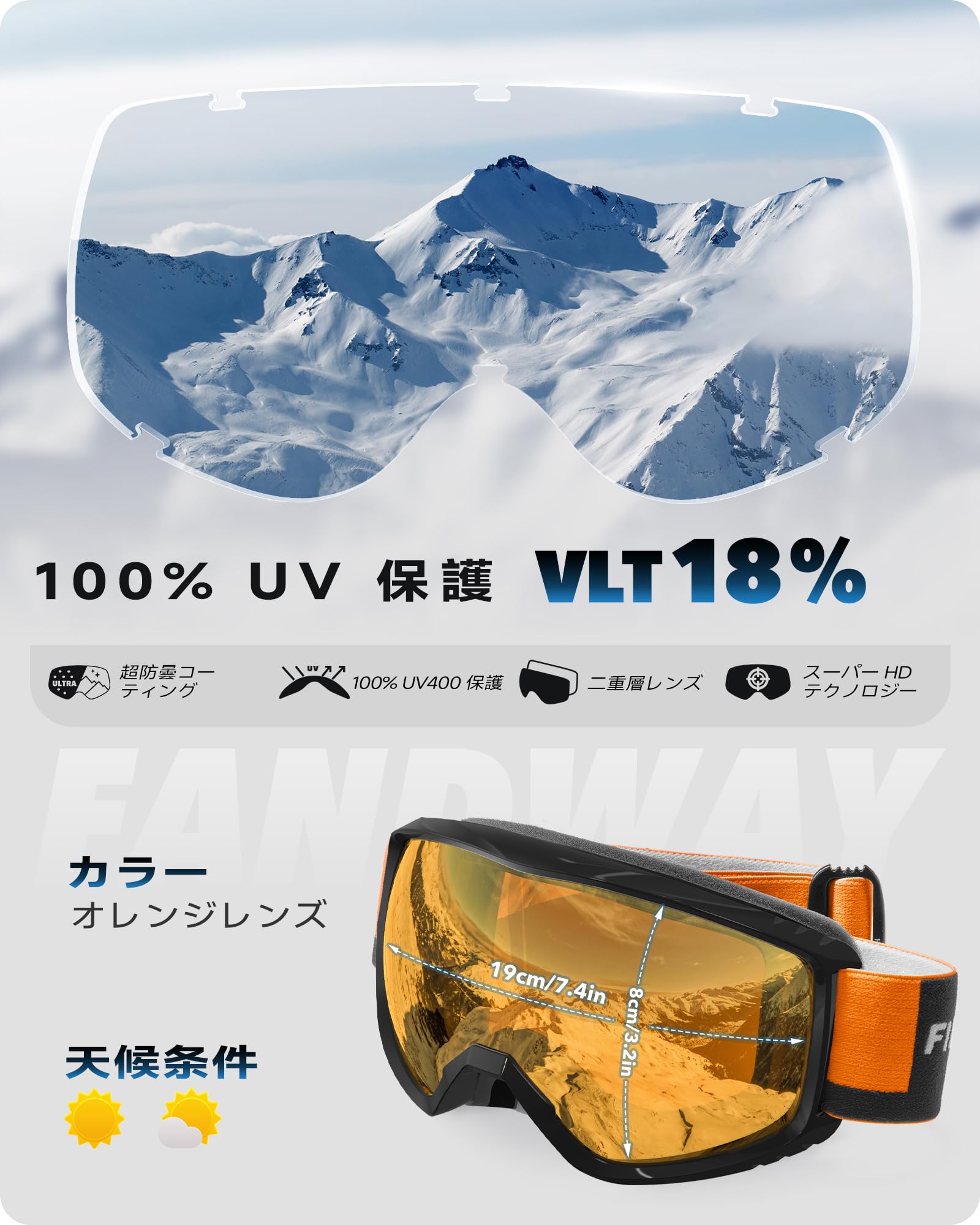 [Findway] スキーゴーグル スノボ ゴーグル 新アップグレード スノーボードゴーグル OTG広視野球面レンズ UV400保護 防風/防雪/曇り防止 紫外線防止 メガネ対応 軽量と耐衝撃 ジュニア 大人男女兼用 登山 スキー 晴れ/曇り/全天候対応