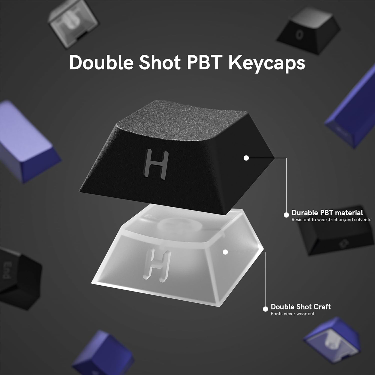 Womier キーキャップ 131キー ダブルショット PBT チェリープロファイル メカニカルキーボード対応 60/65/75/100% レトロゲームテーマ ブラック×パープル