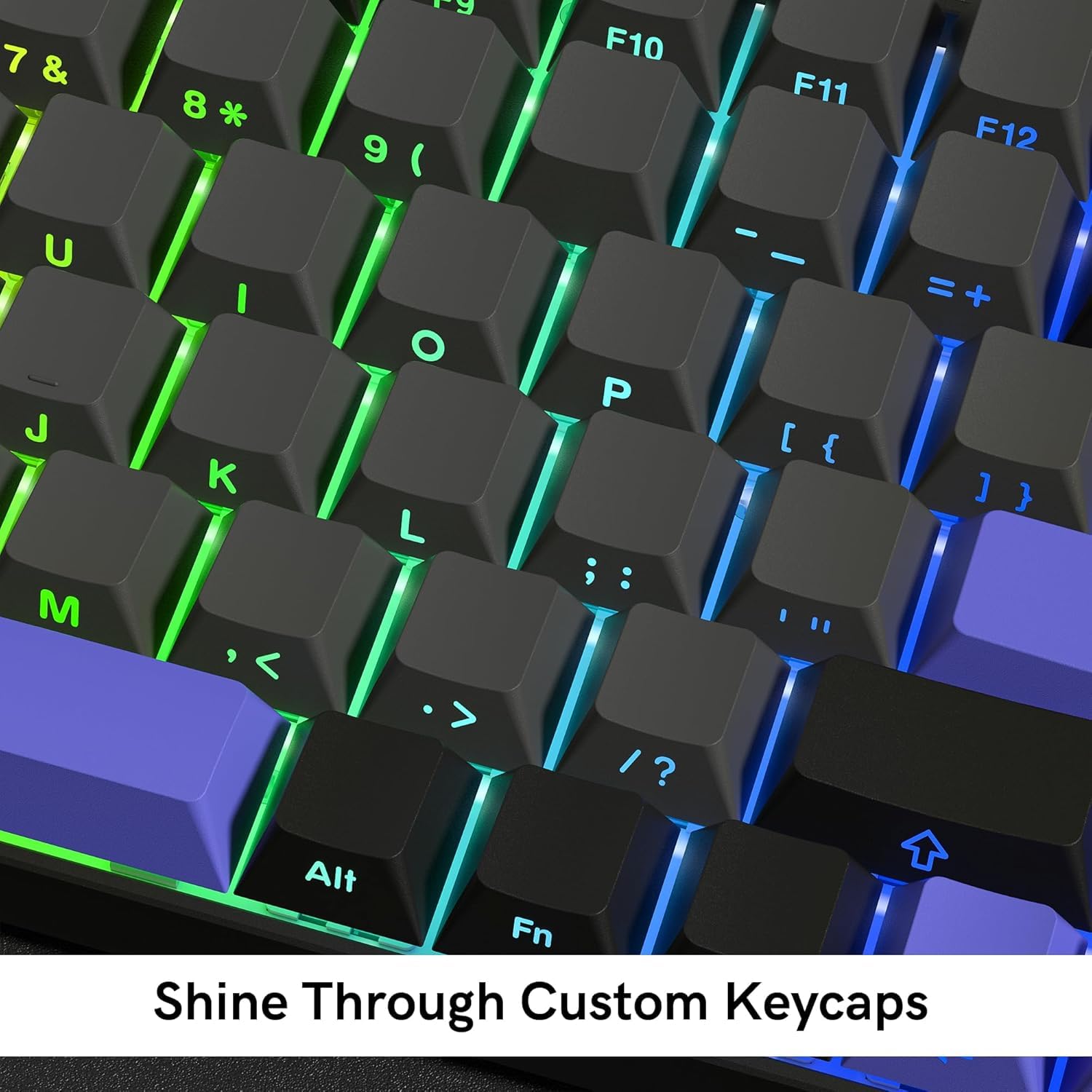 VK68 メカニカルキーボード、68キーコンパクトUSB、65%カスタムLEDバックライト、ホットスワップ対応、小型ミニコンピューターゲーミング有線メカニカルキーボード、PCゲーマー用、Windows・Mac対応