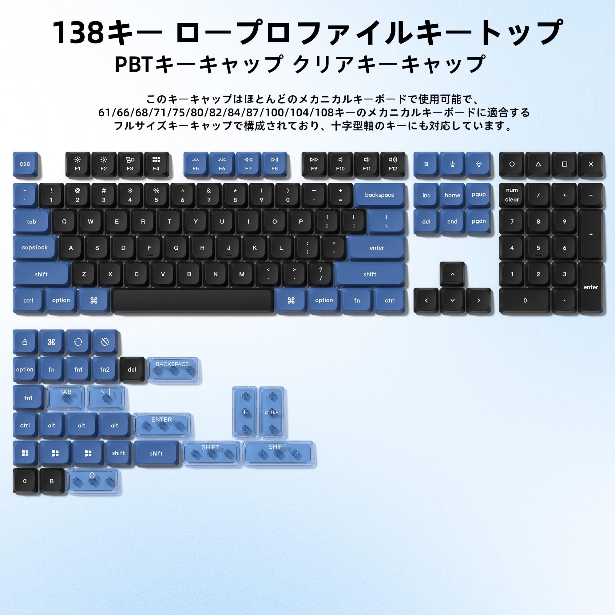 138キー キーキャップ Womier ロープロファイル PBT キーキャップ フルセット 60% 65% 75% 100% Cherry Gateron MX スイッチキーボード用 (ブルー)