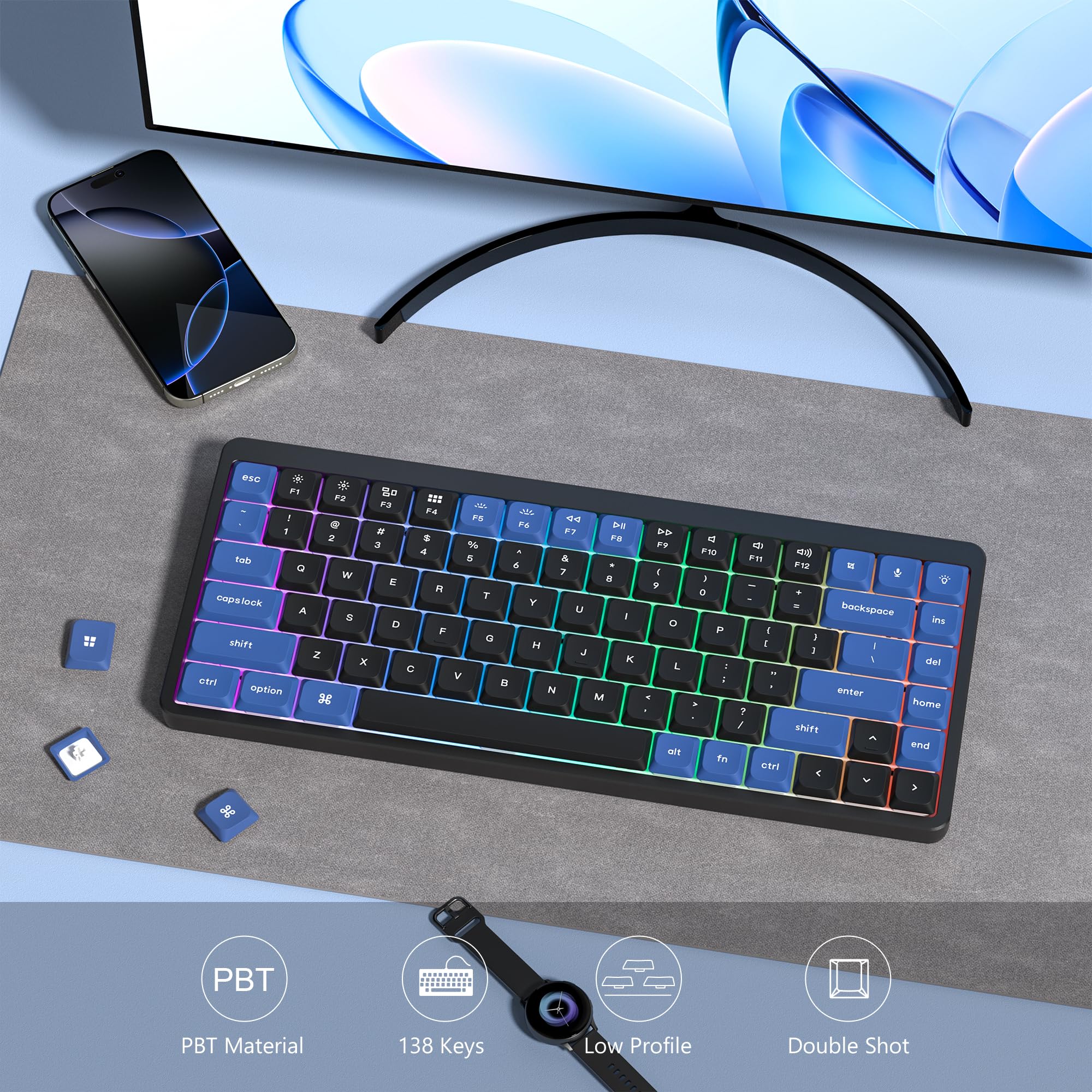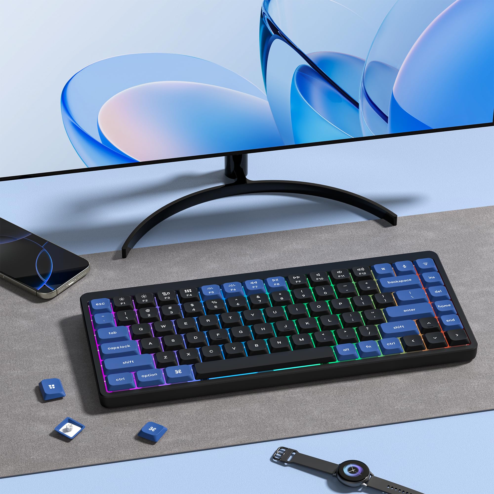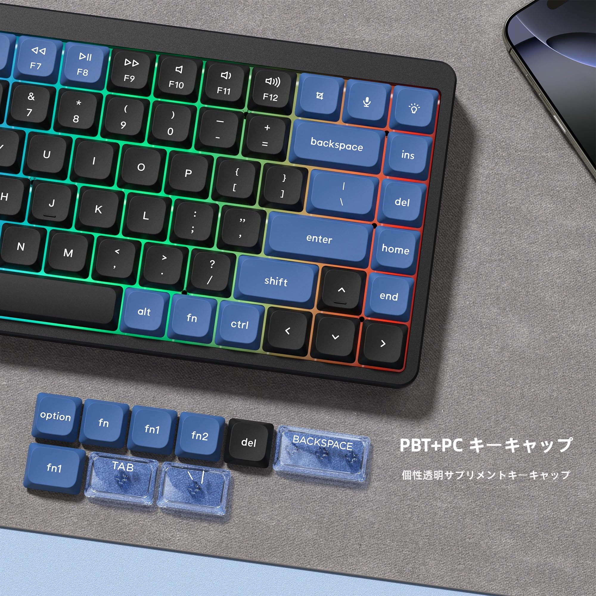 Womier L75 ワイヤレスメカニカルキーボード、75%レイアウト、ホットスワップ対応、ガスケット構造、RGBバックライト、事前潤滑済みスイッチ、クリスタルジェリPBTキーキャップ、ノブ付き、2.4GHz/USB-C/BT5.0