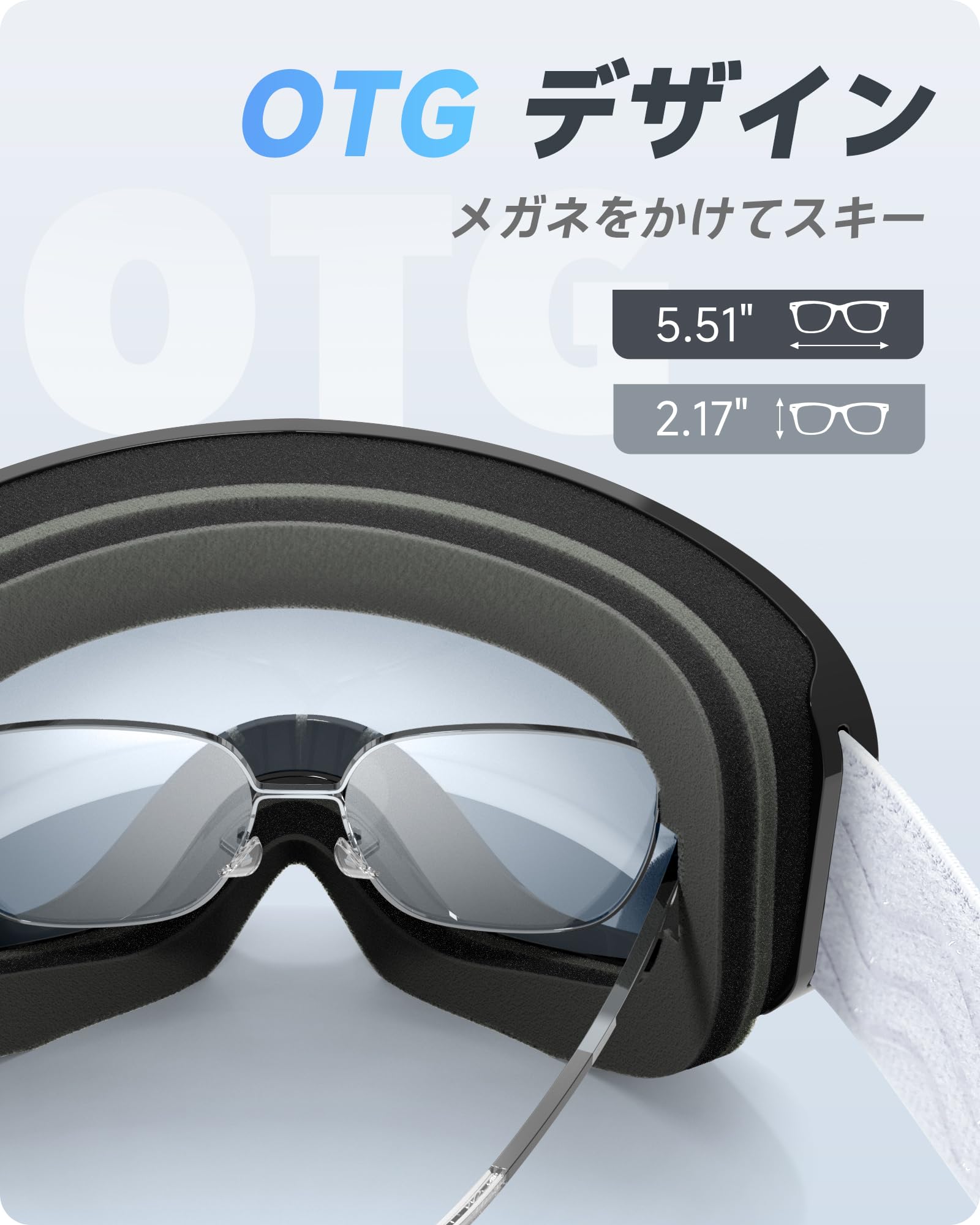 [Odoland] 調光スノーゴーグル 変色ミラーレンズ 曇り止め OTGメガネ対応 UV400 自動調光 昼夜兼用 フォトクロミック スノーボードゴーグル 通気 防風 防塵 防雪 軽量 耐衝撃 男女兼用 大人用