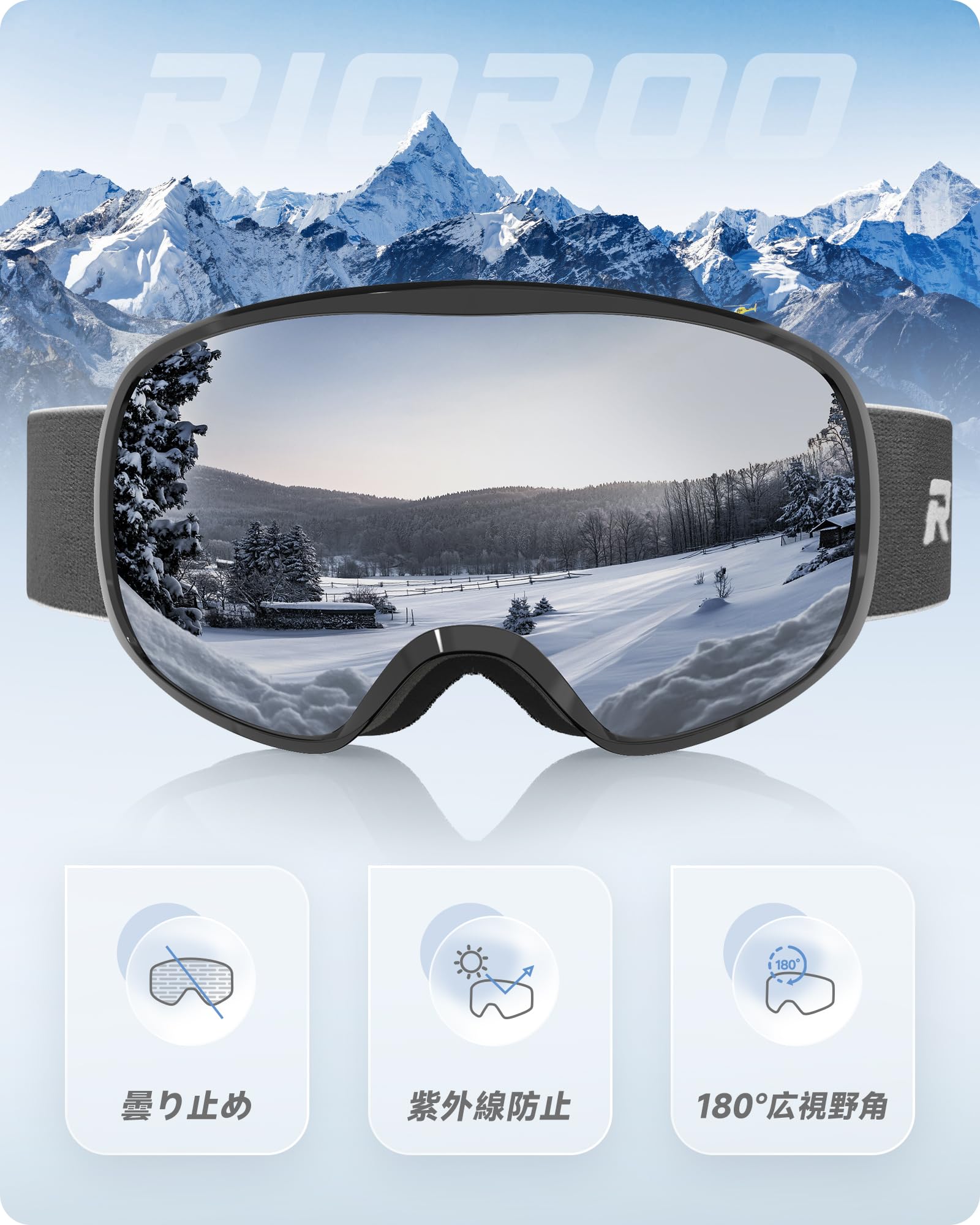 [RIOROO] スキーゴーグル スノボ ゴーグル OTGメガネ対応 レディース メンズ スノーボード ゴーグル 広視野 球面レンズ UV400保護 曇り止め 紫外線防止 防風/防雪 柔軟 耐衝撃 ヘルメット対応 晴れ/曇り/全天候対応 ジュニア 大人男女兼用