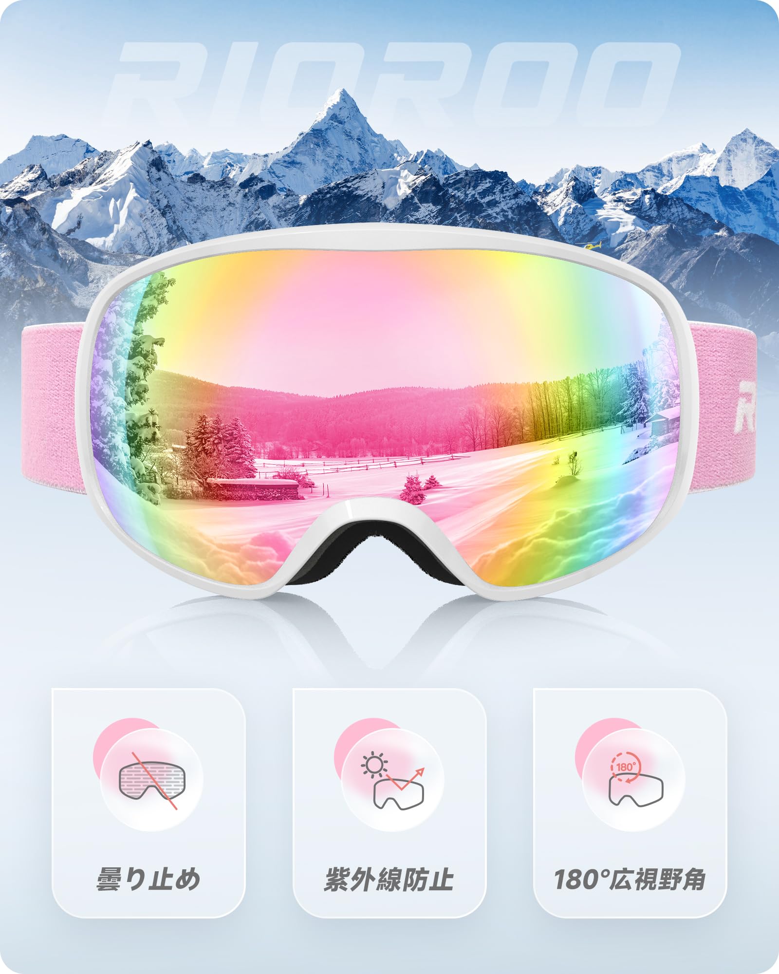 [RIOROO] スキーゴーグル スノボ ゴーグル OTGメガネ対応 レディース メンズ スノーボード ゴーグル 広視野 球面レンズ UV400保護 曇り止め 紫外線防止 防風/防雪 柔軟 耐衝撃 ヘルメット対応 晴れ/曇り/全天候対応 ジュニア 大人男女兼用
